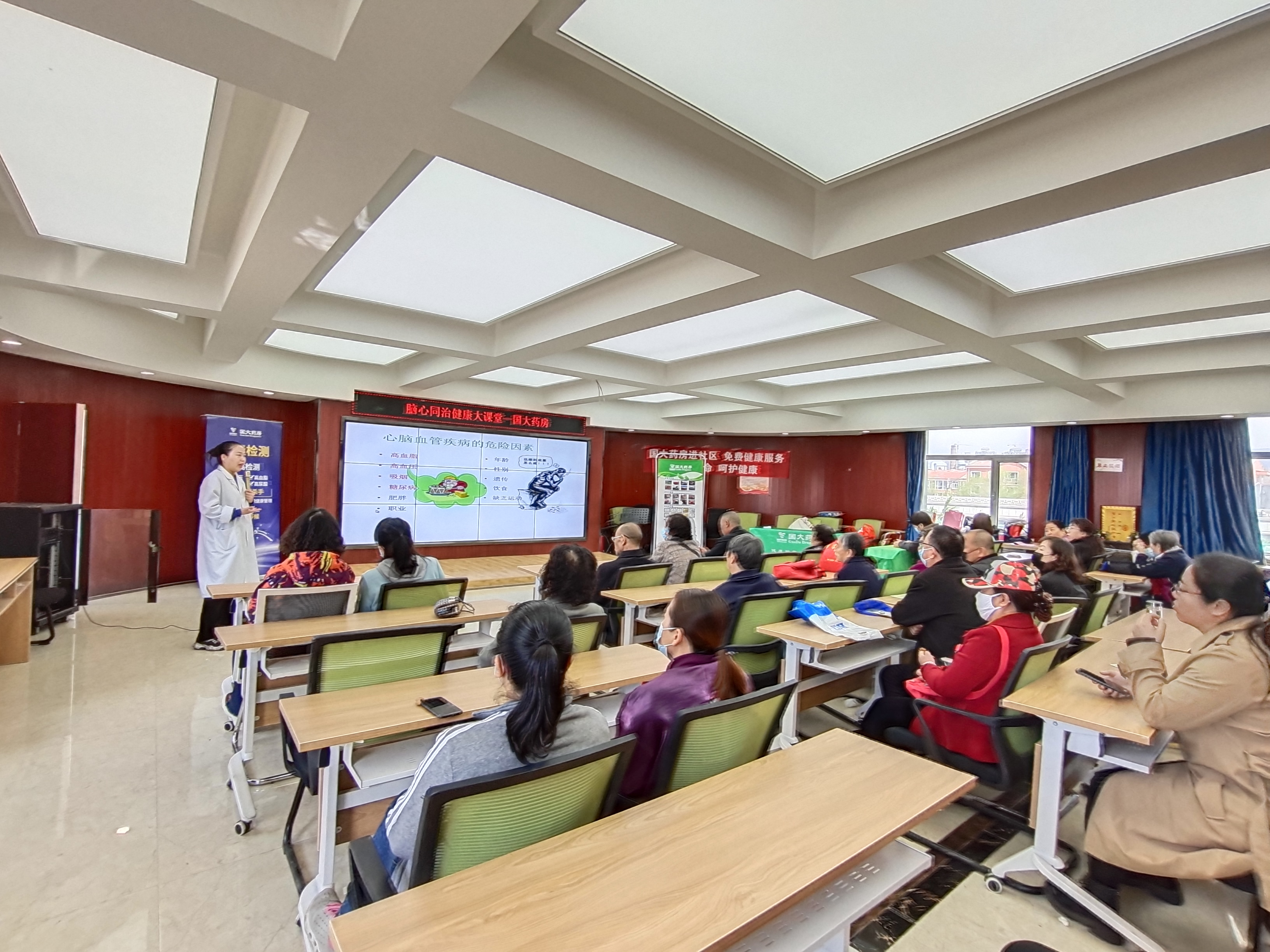 活动开始前,国大药房的工作人员首先为参加活动的工作人员免费监测血压。讲座上,围绕心脑血管疾病,对其影响健康的因素、健康的生活方式、运动对健康的促进作用等内容,介绍了不良饮食习惯、运动不当、吸烟酗酒等引起的疾病危害,从合理膳食、适量运动、戒烟限酒、保持良好心态等四个方面引导大家如何养成良好的生活习惯,加强自我保健,防患于未然。