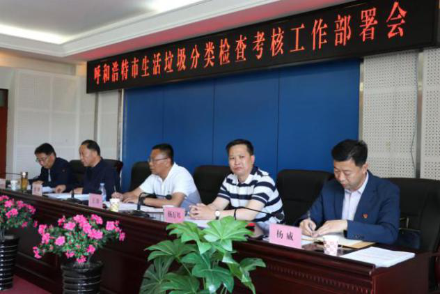 近日,呼市召开生活垃圾分类检查考核工作部署会。市生活垃圾分类工作领导小组办公室副主任、市城管局党组书记、局长王锋,市城管局党组成员、副局长杨万邦,市环卫服务中心党总支书记、主任李轶,副主任郝连军出席会议。市生活垃圾分类领导小组办公室工作人员、市环卫服务中心各科室负责人、市生活垃圾分类指导中心工作人员、市环卫服务中心渣土管理科全体工作人员,市城管执法监察支队工作人员,市四区及经济技术开发区城管局分管领导、生活垃圾分类办公室负责人参加会议。