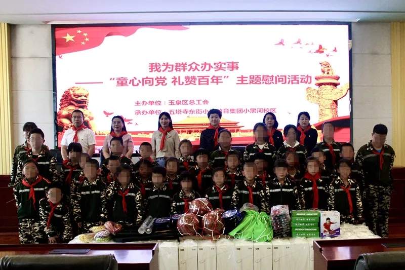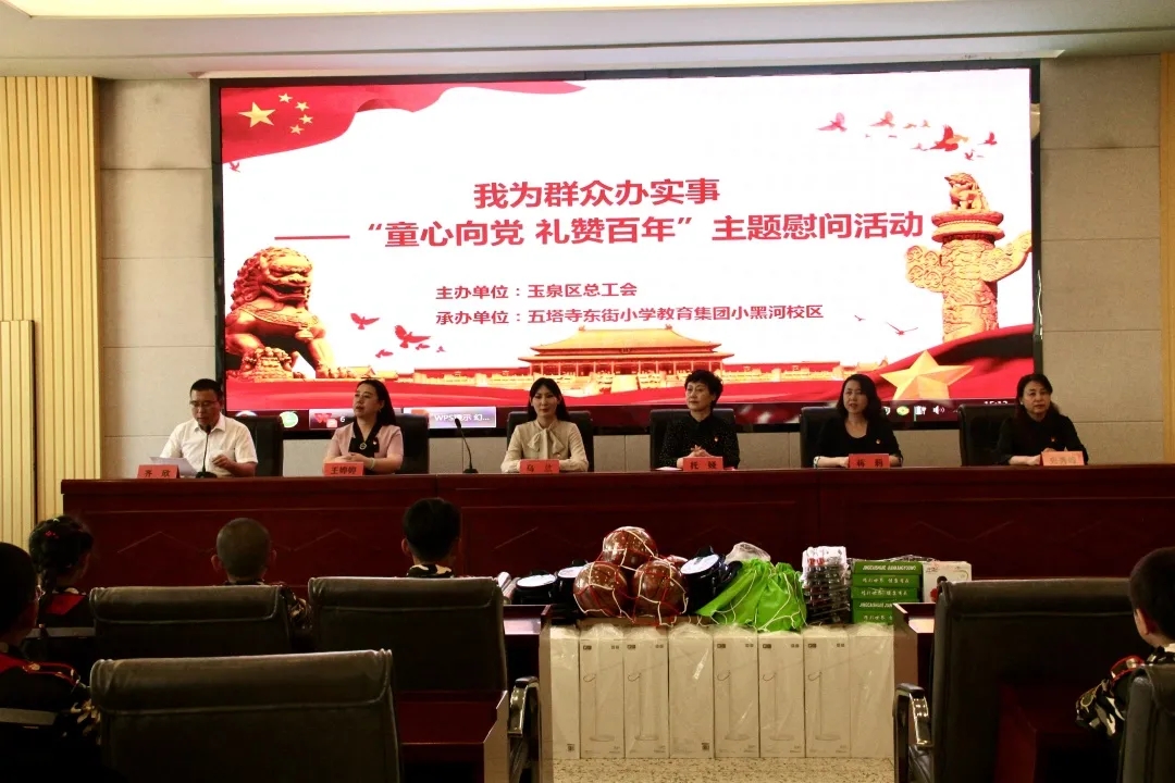 为迎接建党100周年,扎实推进党史学习教育,深入开展“我为群众办实事”实践活动,6月8日,玉泉区总工会主席托娅一行深入五塔寺东街小学小黑河校区开展“童心向党 礼赞百年”关心关爱农牧民工子女和留守儿童主题慰问活动,将党的温暖与工会组织的关爱送到留守儿童的身边。