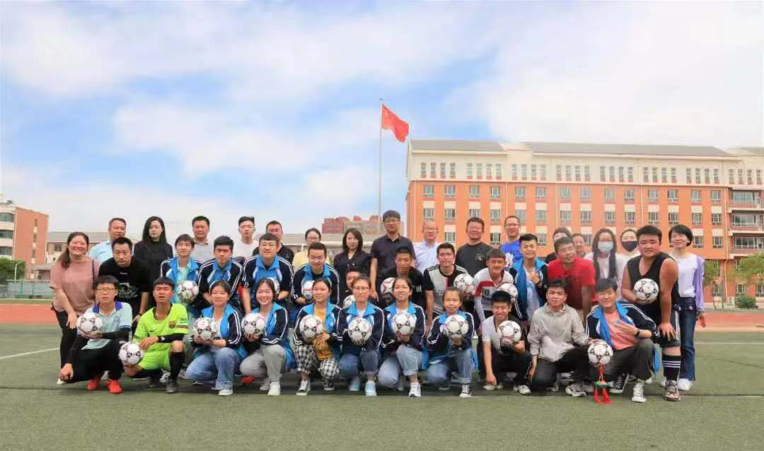 团市委一行和同学们一起踢足球