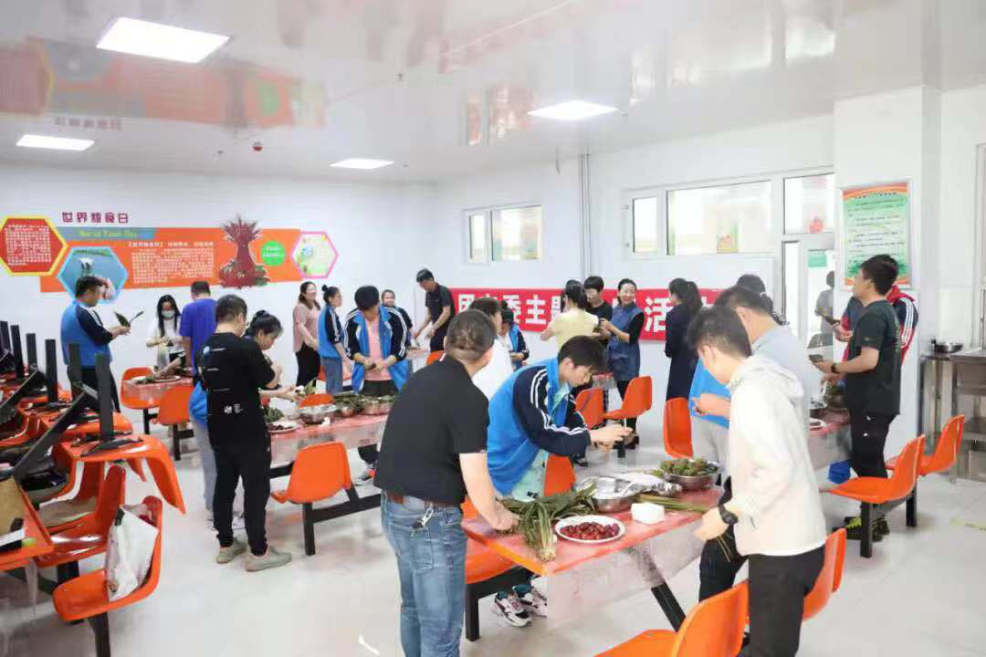 一个粽叶一片情。11日上午,全体党员与同学们走进学校食堂共同学习包粽子。届时还开展了“包粽子达人”比赛。党员们与同学们大家齐心协力、共同合作,包出一个个棱角分明的粽子。现场其乐融融,大家忙的不亦乐乎。