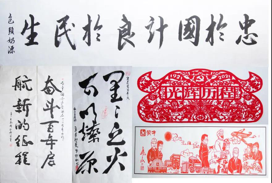 书法绘画创作,丰富日常生活。蒙牛集团的书法绘画爱好者们挥毫泼墨,用毛笔抒发对党的忠诚热爱,用剪纸艺术体现党的光辉历程。艺术作品充分地展现那段峥嵘岁月与新时代交汇的激荡与昂扬,未来更要铭记历史不忘初心。