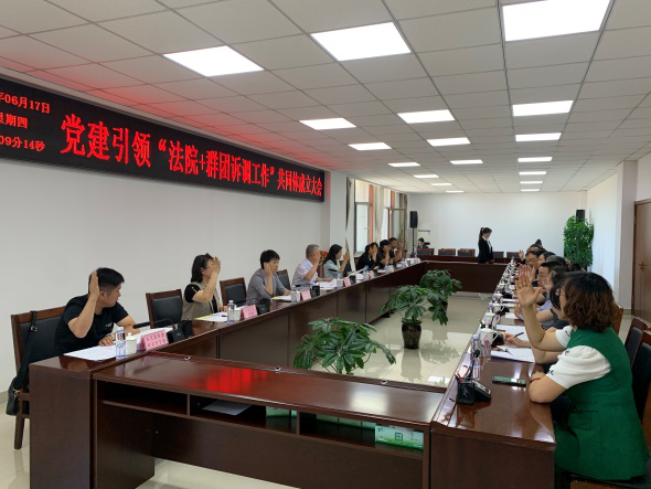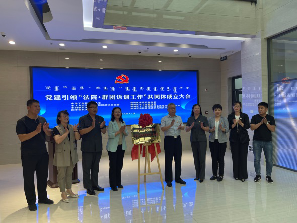 为全面落实新时代党的建设总体要求,全面践行新时代党的组织路线,依法维护广大职工合法权益,积极预防和妥善化解劳动关系领域重大风险,在新城区“诉裁调联手助力 促和谐化解纠纷”党建联合体充分发挥作用的基础上,6月17日上午,由呼和浩特市总工会牵头,在新城区法院召开党建引领“法院+群团诉调工作”共同体成立大会。