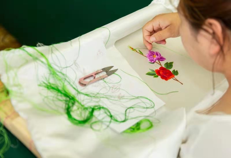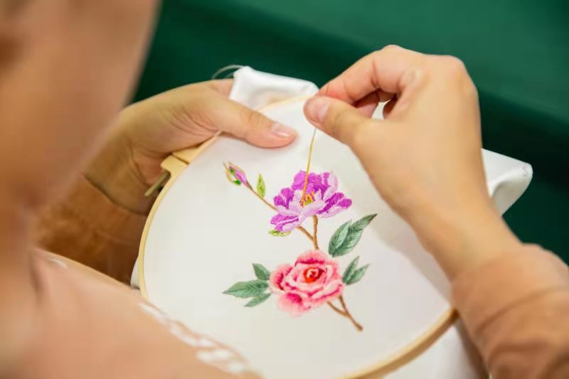 参加比赛的34名选手用各种不同的刺绣技法,以针为笔,以线为墨,绘就了一幅幅异彩纷呈、赏心悦目的“花开向阳、丹心向党”作品。作品充分展现了刺绣者技艺之精妙,彰显了“劳动创造幸福、劳动创造美好”的真谛,同时表现了手工刺绣行业人“建功十四五、奋进新征程”的决心。比赛过程中,技艺精湛的参赛选手们利用休息时间共同镌绣五星红旗,将手中绵绵的丝线化作对祖国的热爱。向中国共产党成立一百周年献礼,祝愿我们伟大祖国繁荣昌盛、国泰民安!