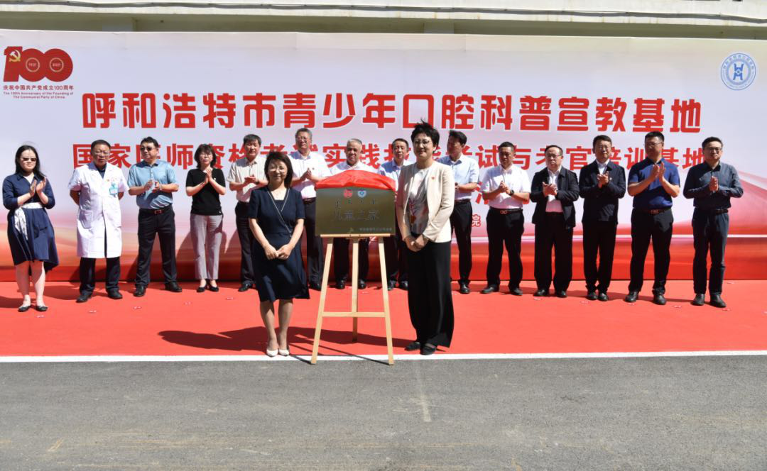 内蒙古医院协会会长尹赤林、市人民政府副秘书长赵明共同为“呼和浩特市青少年口腔科普宣教基地”揭牌。