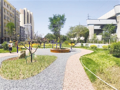 新城区园林绿化服务中心副主任杜家霖介绍:“这处‘口袋公园’我们在施工中布置了景观石和易生长花卉,还铺设了耐旱的草坪,设置了凉亭和廊架,还有供儿童游玩的沙坑,使这处原有绿