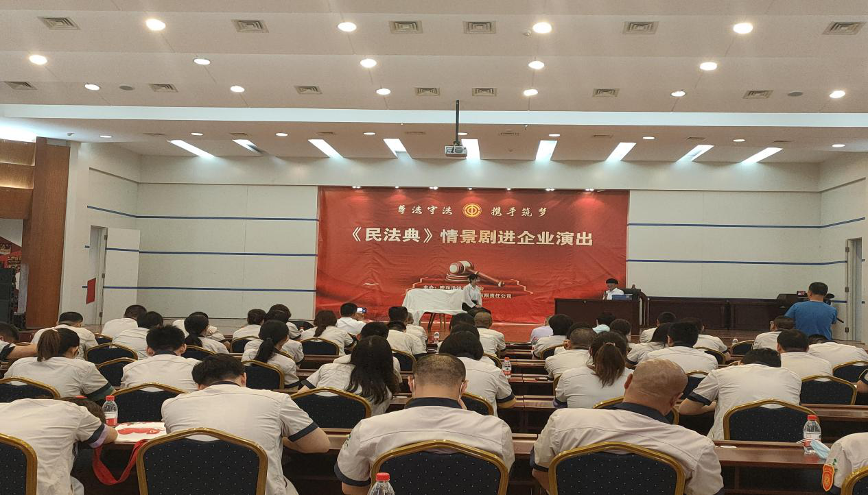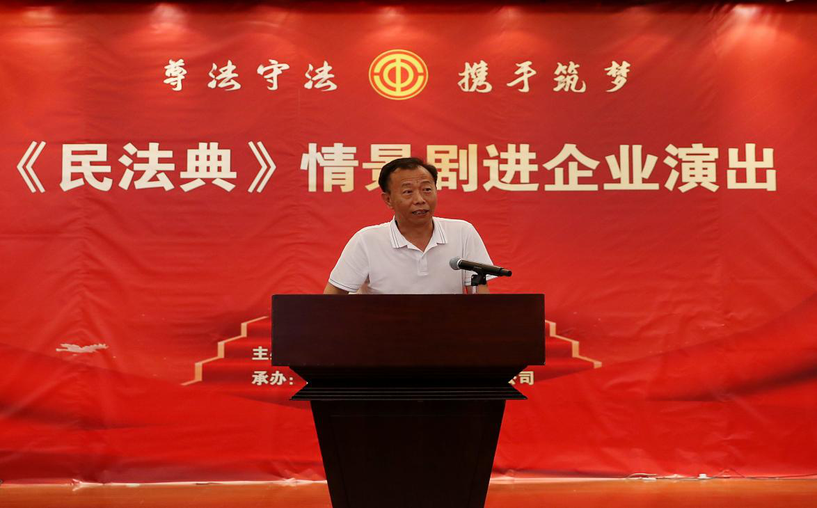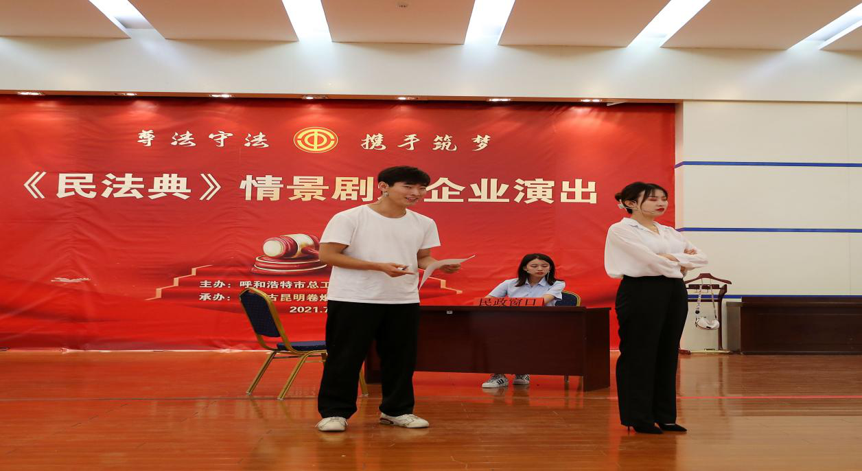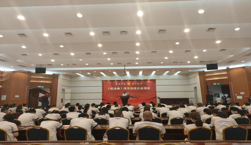 7月14日,呼市总工会在内蒙古昆明卷烟有限公司举办《民法典》情景剧进企业演出活动,呼市总工会党组成员、副主席冀罕钢,呼市总工会法工部部长任剑平出席了活动,100余名职工观看了演出。