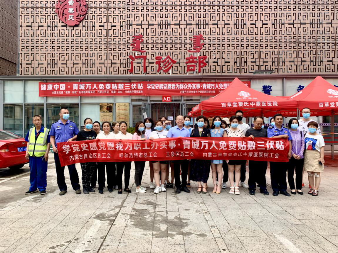 2021年的“三伏时节”已至,春夏养阳,秋冬养阴。为更好落实“我为职工办实事”活动,改善职工群众健康状况,不断提升职工群众获得感、幸福感,玉泉区总工会联合自治区总工会、市总工会、内蒙古百草堂秦氏中蒙医医院工会,于7月14日起,开展“学党史 感党恩 我为职工办实事·青城万人免费贴敷三伏贴”活动。