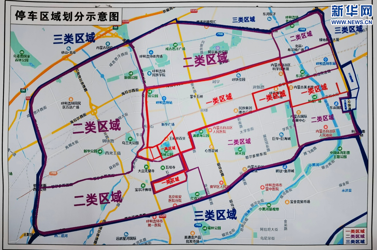 呼和浩特市区路侧停车区域划分示意图。新华网 发
