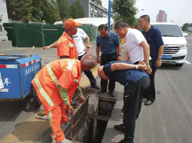 近日,呼和浩特市进入汛期,降雨天气频繁,为保障城区主次干道雨水井排水畅通,全面做好雨季防汛排涝工作,7月26日上午,呼市环卫服务中心主任李轶、副主任王润奎带领业务一科、业务二科、业务三科、宣传科工作人员巡查城区主次干道雨水井清理、疏通、排水情况,现场指导雨水井清掏作业,安排部署各区做好雨后积水清理工作。