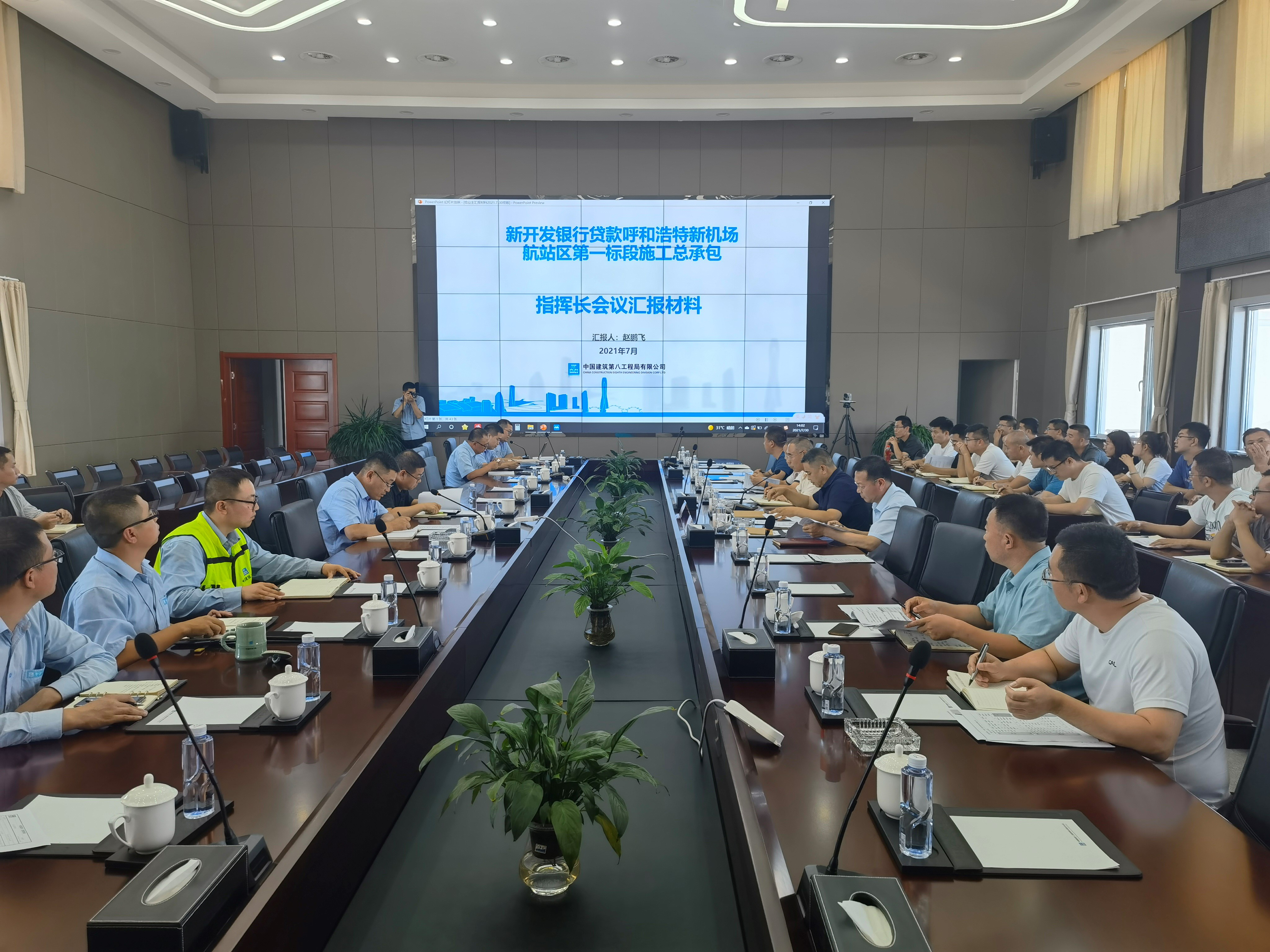 7月30日,呼和浩特市交通投资集团党委副书记、新机场项目建设现场指挥部常务副指挥长栗耀庭主持召开新机场项目开工一周年“回头看”专题会议,施工单位、监理单位有关人员参加会议。