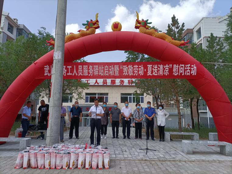 8月10日上午,武川县总工会举行了务工人员服务驿站启动仪式暨“致敬劳动 夏送清凉”慰问活动。武川县委副书记周振光、自治区总工会办公室主任杨志鸿、县政府副县长刘智利、县政协副主席张春梅以及相关部门领导、各乡镇、重点企业工会主席出席仪式,同时还为夏末秋初奋战在户外高温的300余名一线职工送去了防暑降温物品,为他们送上丝丝凉意和一份诚挚的关怀。