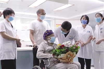 图为患者与医护人员亲切交流