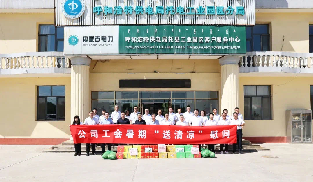近日,内蒙古电力(集团)公司董事、党委委员、工会主席白振英一行深入呼和浩特供电局托县园区供电分局开展“夏送清凉”慰问活动,为处于高污染地区的托县工业园区分局的职工送去防暑降温慰问品。