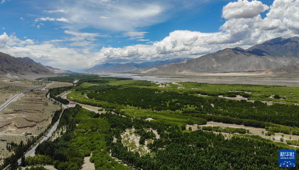 雅鲁藏布江山南段防护林(2020年6月27日摄,无人机照片)。新华社记者 晋美多吉 摄