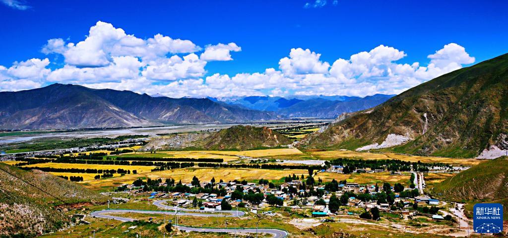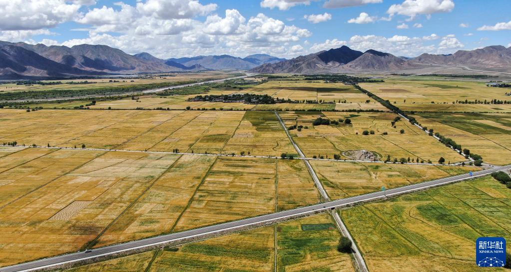 当下,在西藏河谷地带成片的青稞地里,微风吹麦浪,一片金黄,如同农民心中荡起的幸福涟漪。