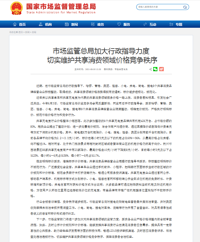 近年来以共享单车和共享充电宝为代表的共享消费领域服务价格一路上涨,消费者感知明显,引发社会广泛关注。今年6月3日,市场监管总局价监竞争局会同反垄断局、网监司召开行政指导会,要求哈啰、青桔、美团、怪兽、小电、来电、街电、搜电等8个共享消费品牌经营企业限期整改,明确定价规则,严格执行明码标价,规范市场价格行为和竞争行为。