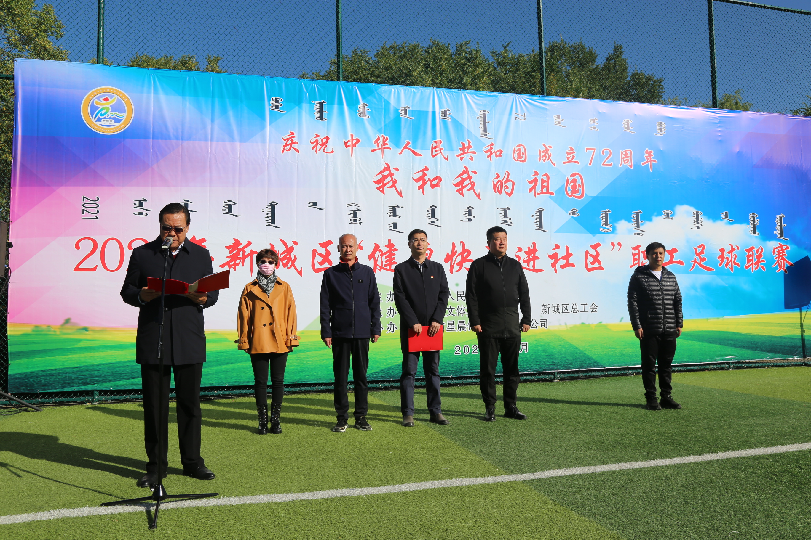 开幕式上新城区政协副主席、区总工会主席杨军主席致开幕词;裁判员代表和运动员代表进行宣誓;区委常委、宣传部部长敖登部长宣布本次职工足球联赛正式开始,并为本次比赛开球;区文体旅游广电局局长兰建军主持了开幕式。