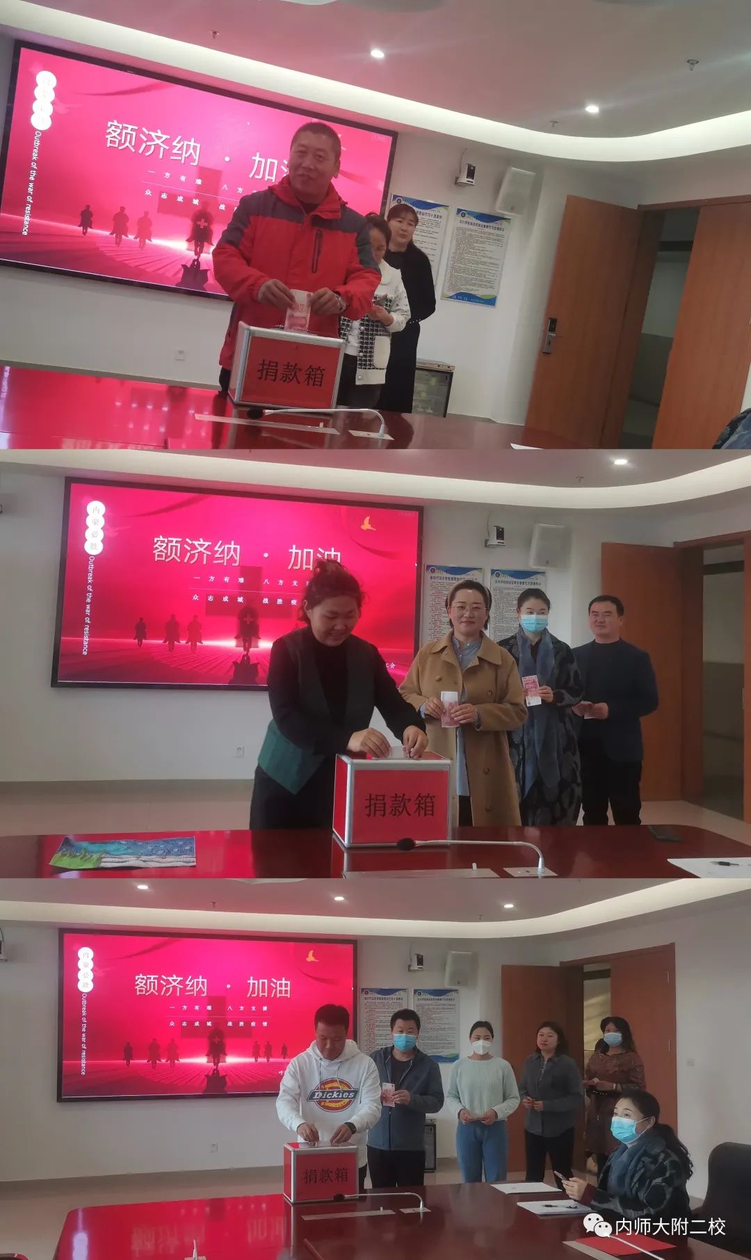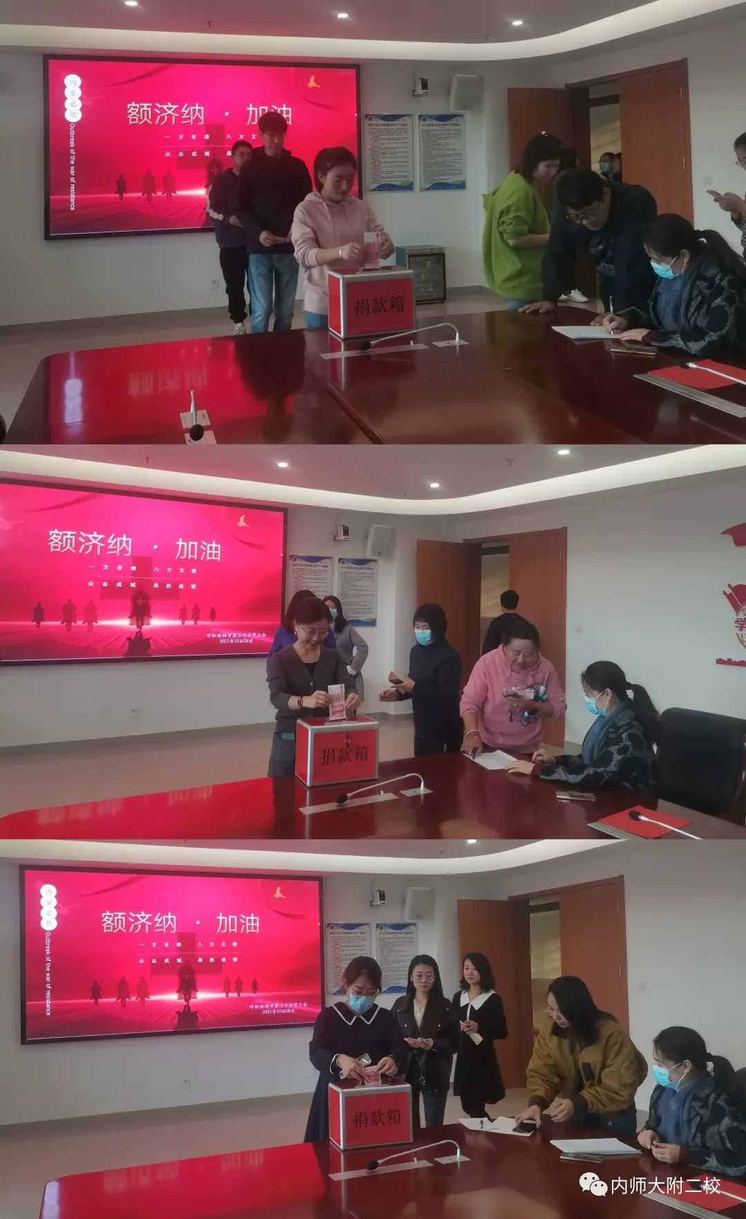 为坚决遏制疫情扩散,全力打赢疫情防控阻击战,充分发扬中华民族“一方有难、八方支援”的优良传统,10月28日,校工会号召全校教职工为额济纳旗抗击新型肺炎疫情进行爱心捐款活动。