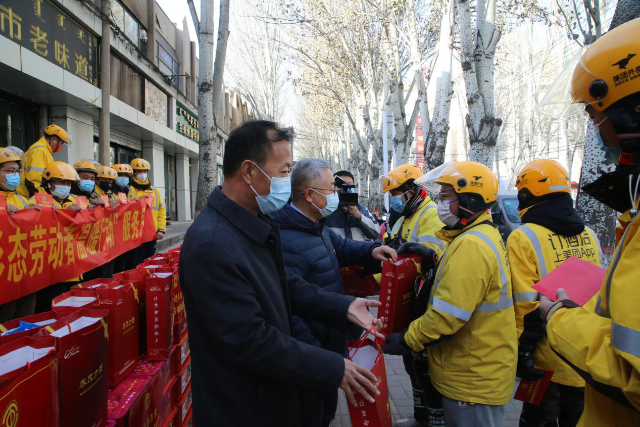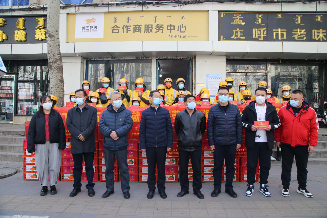 11月15日,呼和浩特市总工会党组书记、副主席汪俊亭,呼和浩特市总工会副主席冀罕钢,市总工会保障部部长、市三产服务业工会主席等一行,带着党和政府对新就业形态劳动者的关心关爱,深入到美团配送企业开展向新就业形态劳动者送温暖——慰问网约送餐员活动。