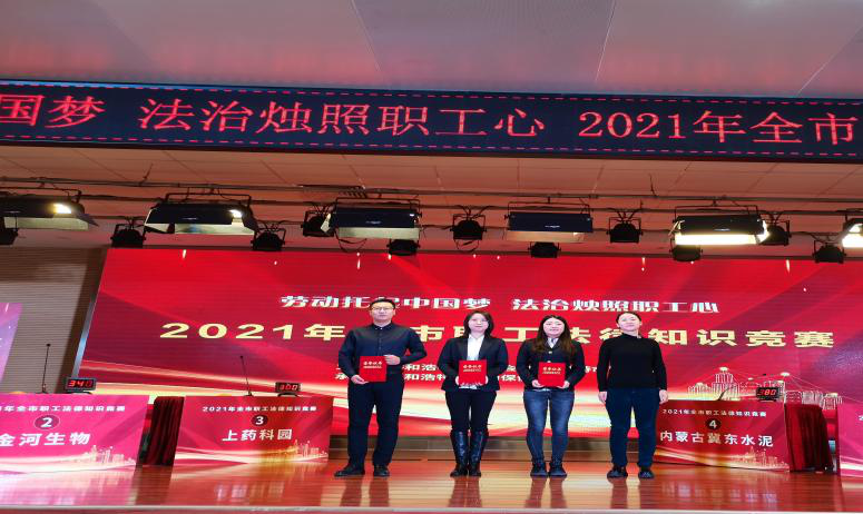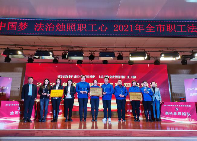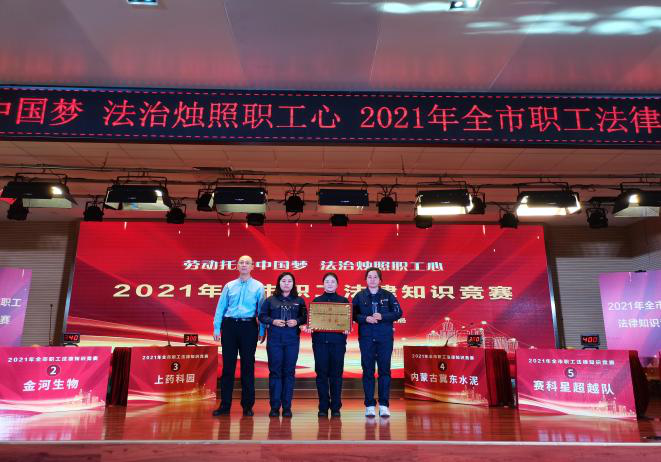 经过激烈角逐,金山热电代表队获得2021年全市职工法律知识竞赛一等奖,赛科星超越队、内蒙古冀东水泥有限责任公司代表队获得2021年全市职工法律知识竞赛二等奖,上药科园信海呼和浩特医药有限公司、金河生物、呼和浩特城市交通投资建设集团有限公司代表队获得2021年呼和浩特市职工法律知识竞赛三等奖,呼和浩特市妇幼保健院获得2021年呼和浩特市职工法律知识竞赛优秀组织奖。在颁奖仪式上,还为获得线上答题个人一、二、三等奖职工颁发证书和奖品。