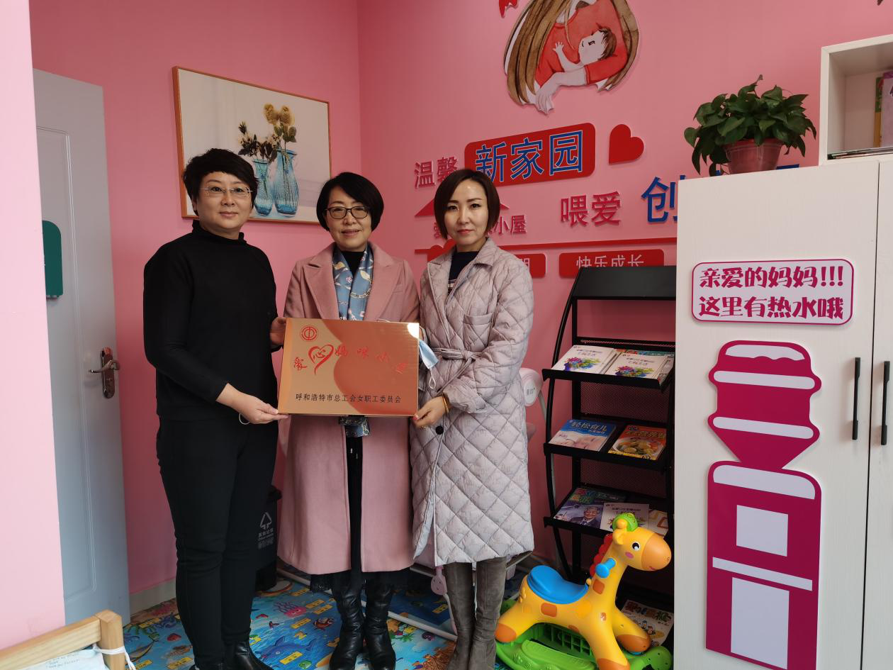 11月29日,呼和浩特市总工会女工部部长高利红来到呼市新城区行政审批和政务服务局工会和保合少镇恼包村工会联合会检查验收“爱心妈咪小屋”,新城区总工会副主席刘彩虹陪同。