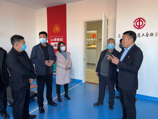 邢主任一行参观了西街街道星火巷社区、海东路街道人大代表之家、职工活动室、职工健身室、心理辅导室、职工书屋、职工食堂、文化宣传长廊以及上墙制度,并观摩学习了社区职工之家的相关接待记录情况和活动台账。听取了“两家”共建和服务职工相关情况介绍,详细了解了日常工作情况和党史学习教育、职工书屋等工作开展情况,并相互交流了下一步开展人大代表之家与职工之家共同建设的工作新思路、新想法。