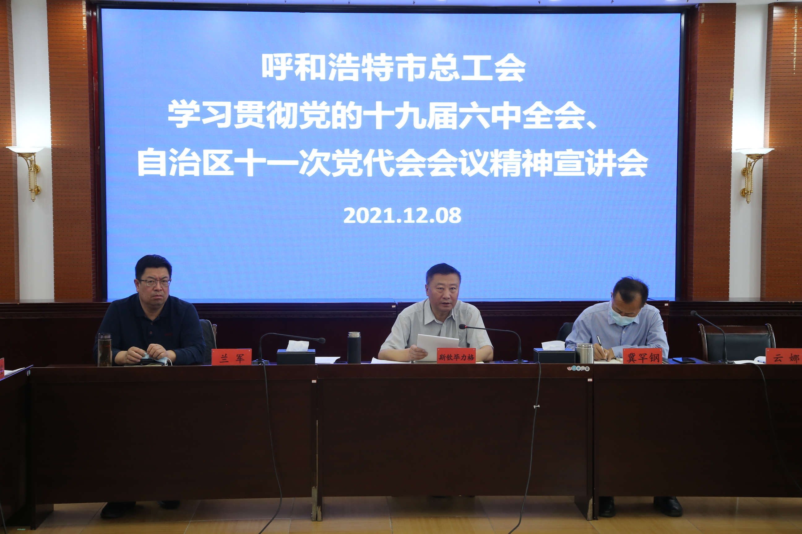 12月8日上午,呼和浩特市人大副主任、总工会主席斯钦毕力格在呼和浩特市总工会机关作十九届六中全会、自治区第十一次党代会、市第十三次党代会精神专场宣讲报告。呼和浩特市总工会本级、直属事业单位全体干部职工参加会议。