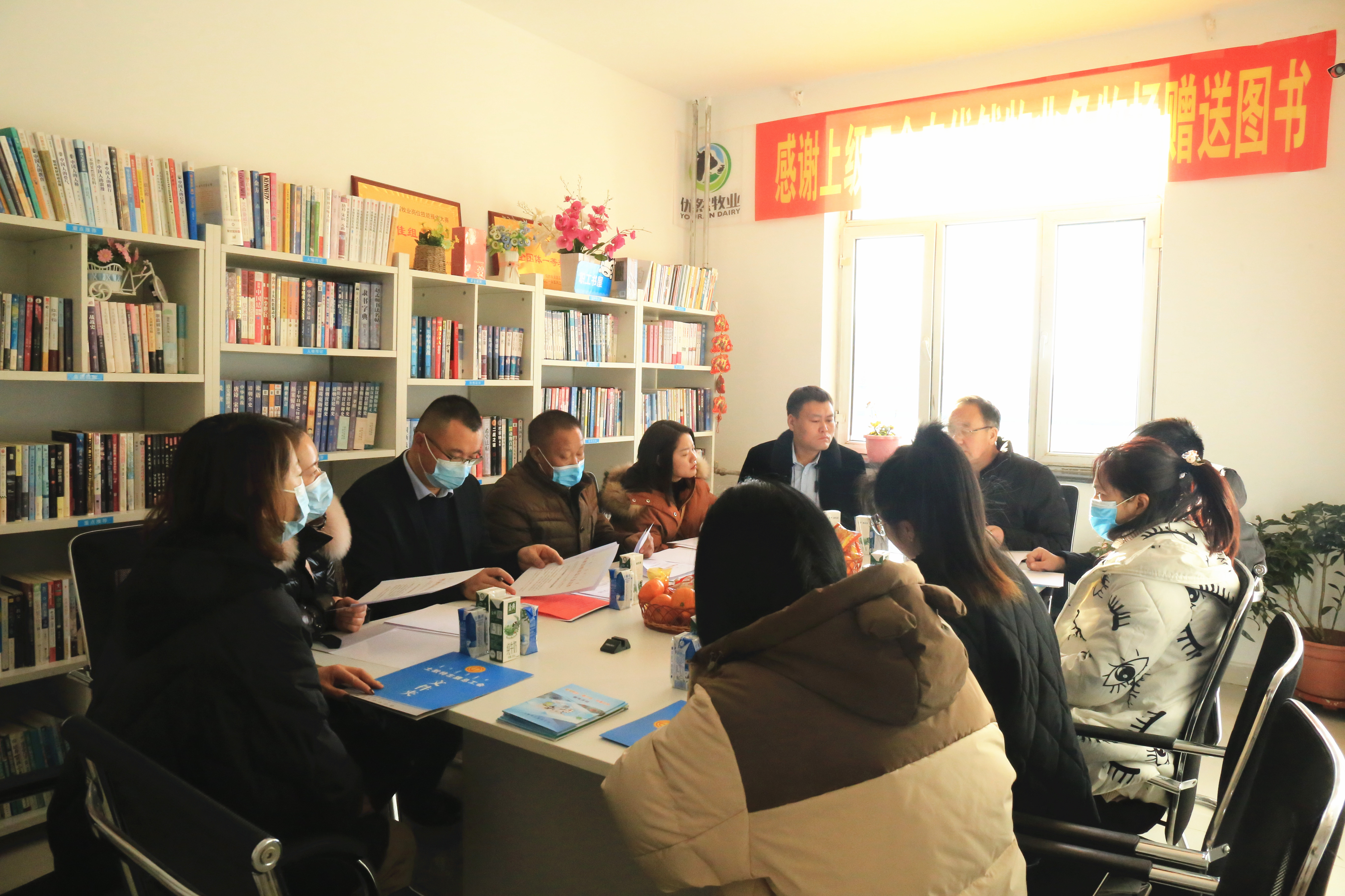 12月22日,土左旗总工会在内蒙古优然牧业二什家牧场召开职工书屋建设工作推进会暨捐赠图书仪式。会议由土左旗总工会党组书记、常务副主席靳小林主持,11家市级工会职工书屋企业工会负责人参会。