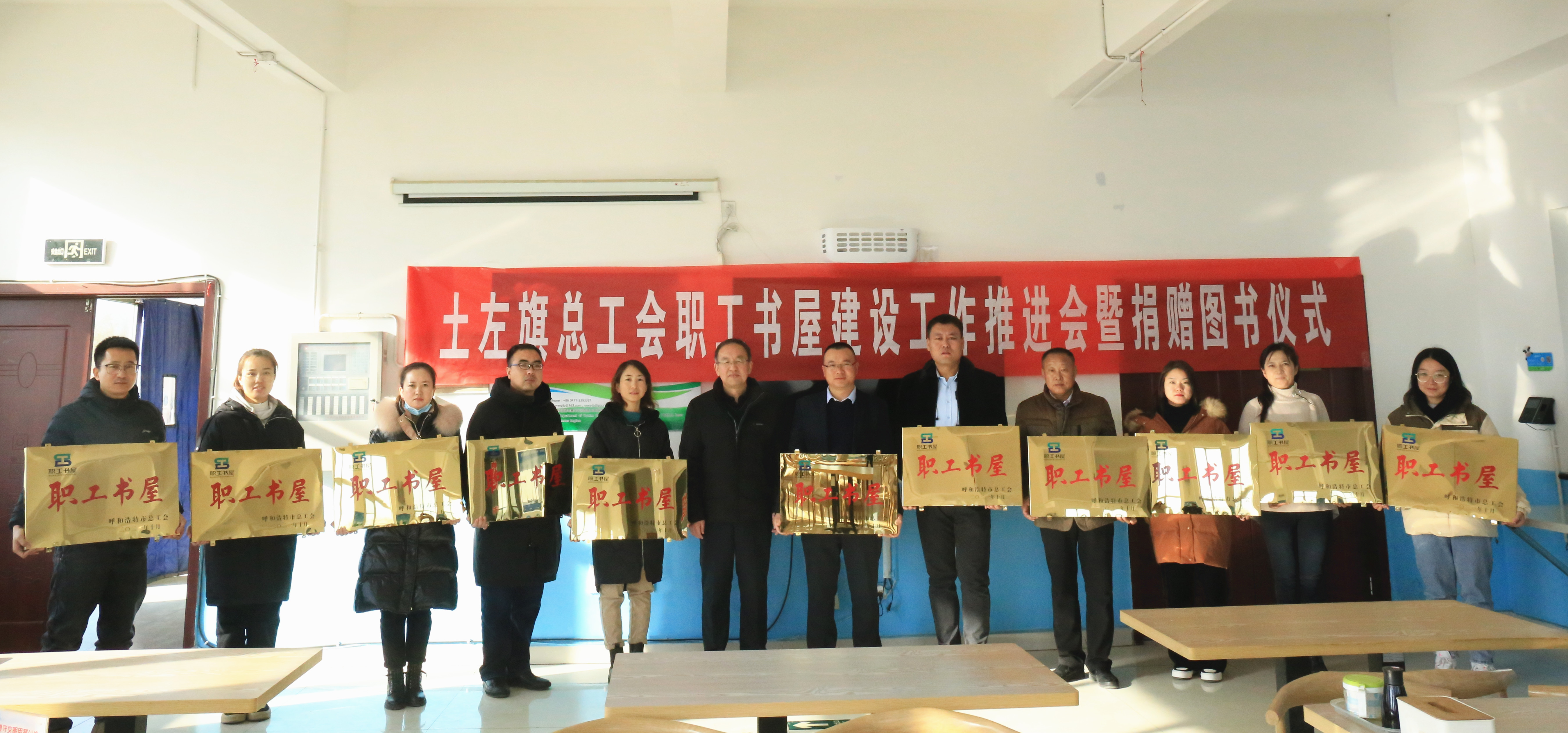 会后,靳小林代表土左旗总工会为11家市级工会职工书屋举行授牌赠书仪式,鼓励基层工会以“职工书屋”建设为载体,深入贯彻落实十九届六中全会、自治区第十一次党代会与市第十三次党代会精神,围绕伊利现代智慧健康谷项目建设和奶源基地建设,随着全旗乳产业的发展,不断加强产业工人队伍思想引领,助力推进产城融合,赋能土左旗经济高质量发展。