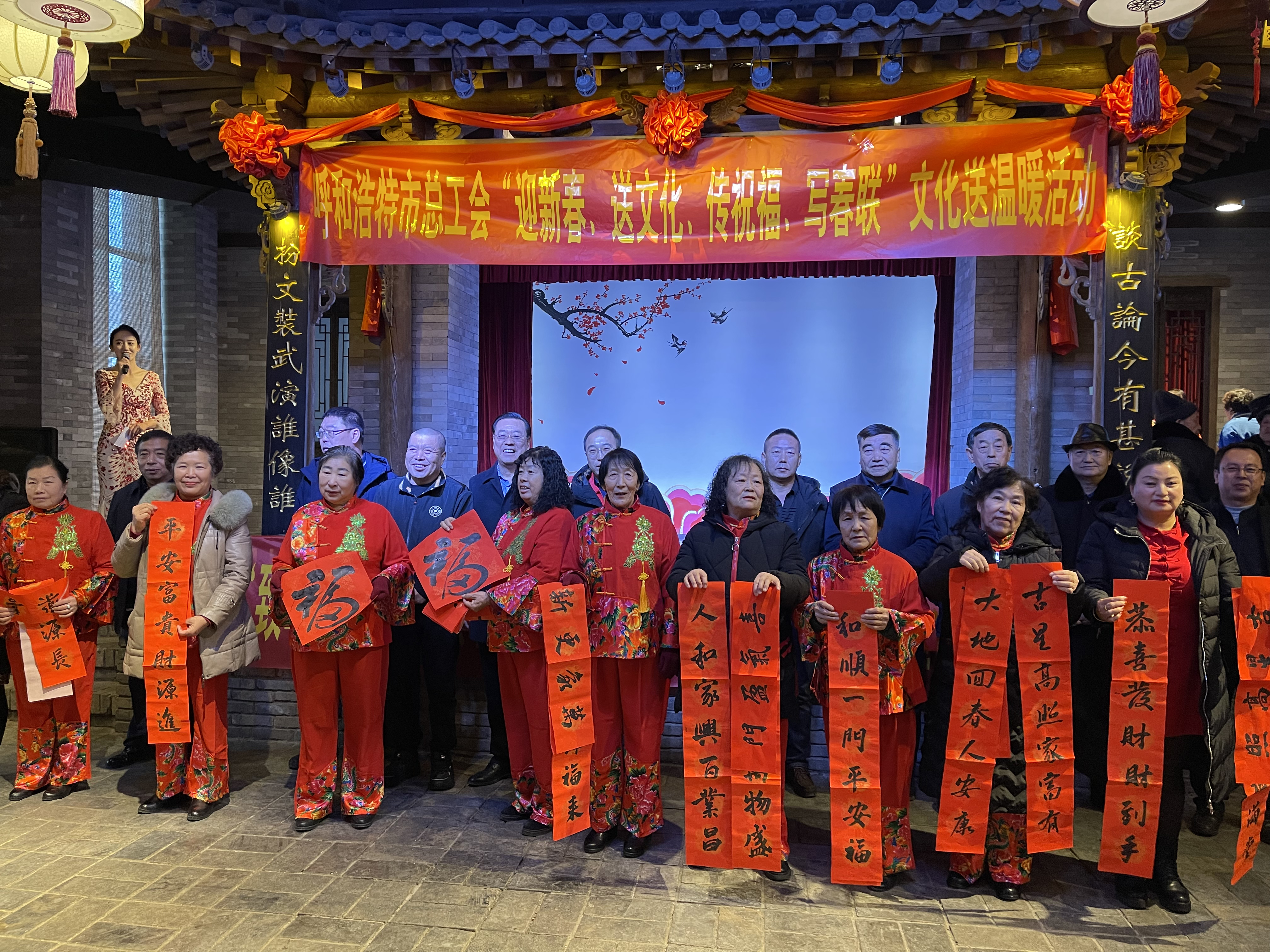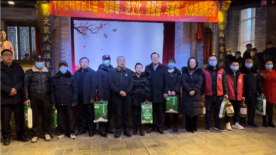 为深入学习贯彻党的十九届六中全会精神,弘扬中国传统文化,助力乡村文化振兴,在新春佳节即将来临之际,呼和浩特市总工会组织我市知名书法人士,深入呼和浩特市新城区恼包村开展“迎新春、送文化、传祝福、写春联”文化送温暖活动,为职工群众送上新年的美好祝福,将党和政府的温暖送到村民手中。呼和浩特市总工会宣教部部长包静,呼和浩特市新城区政协三级调研员、区总工会主席杨军,新城区总工会副主席殷煌,保合少镇人大主任、镇工会联合会主席唐志平等相关领导参加了活动。