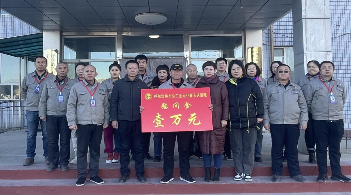 2022年1月19日上午,呼和浩特市总工会一行走进呼和浩特市西郊国储库有限公司开展元旦春节送温暖慰问活动,为呼和浩特市西郊国储库有限公司的职工们带来了节日的祝福和1万元的慰问金。