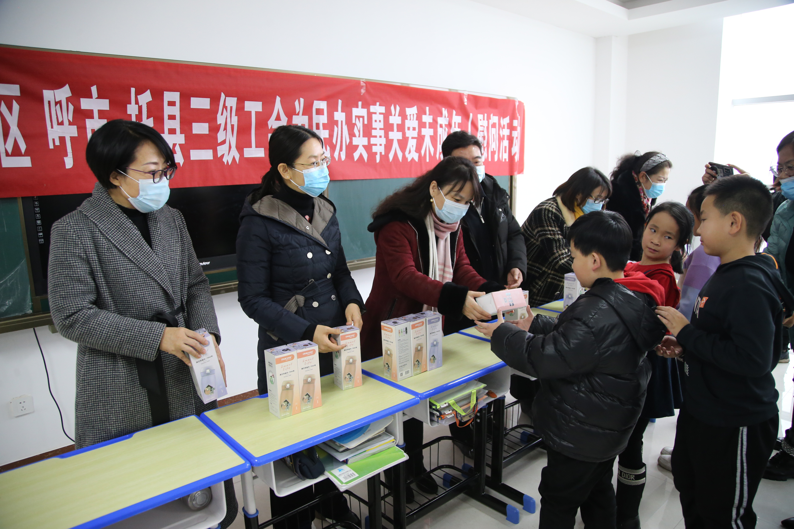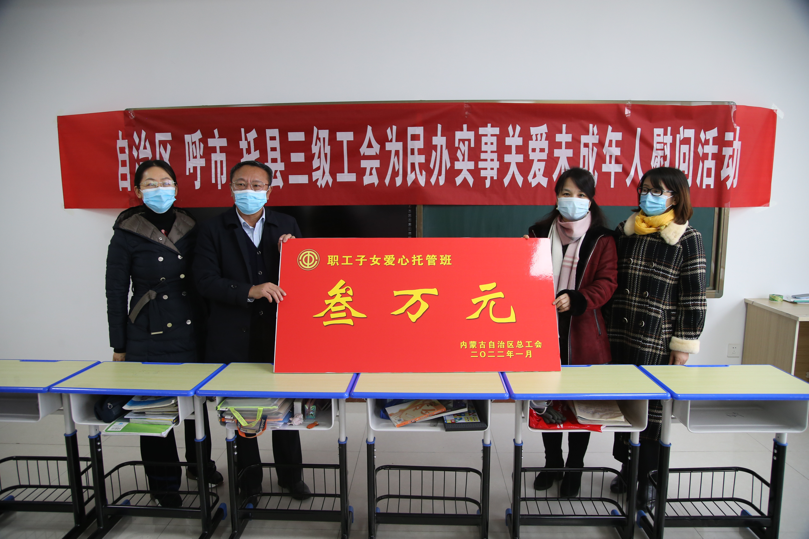 调研中,吴燕平一行走进托县总工会爱心托管班,实地参观了教室、音乐活动室、儿童娱乐区等功能区域,详细了解了托管班运行情况、师资配备、安全监管、餐饮保障等工作,并向托管班资助三万元建设资金,同时给孩子们送去儿童保温杯等慰问物资。