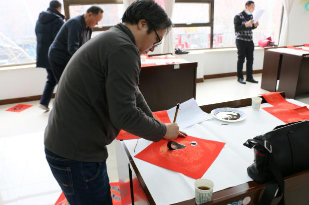 活动现场,闻讯赶来的职工络绎不绝,书法家们在案前挥毫泼墨,一幅幅笔法精湛、饱含浓浓喜庆祥和气息的对联跃然纸上,大家争相领走,感受浓浓年味。