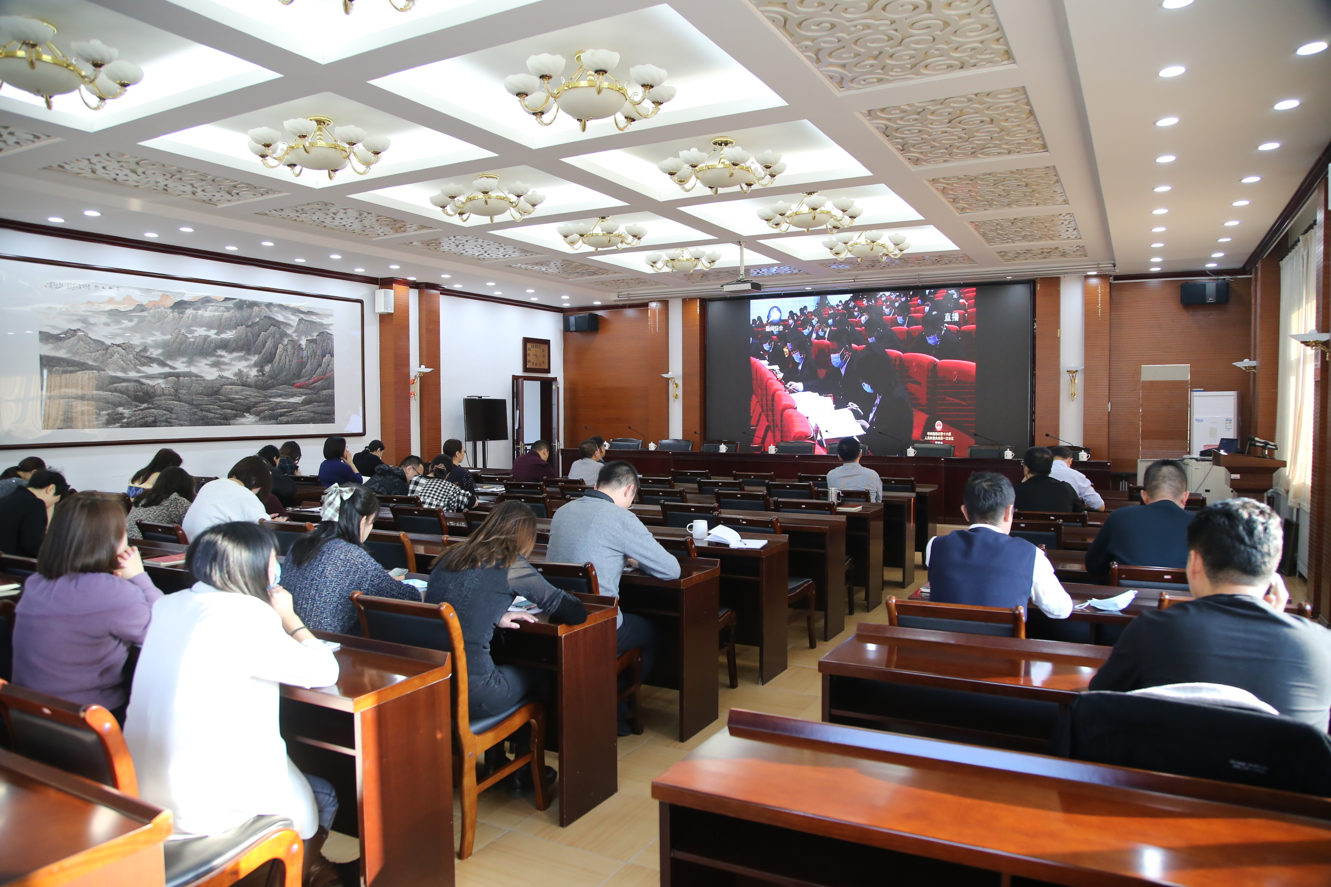 2月10日上午9时,呼和浩特市第十六届人民代表大会第一次会议隆重开幕,市总工会组织机关、产业工会和直属事业单位全体党员干部集中收看大会直播,认真学习领会会议精神。