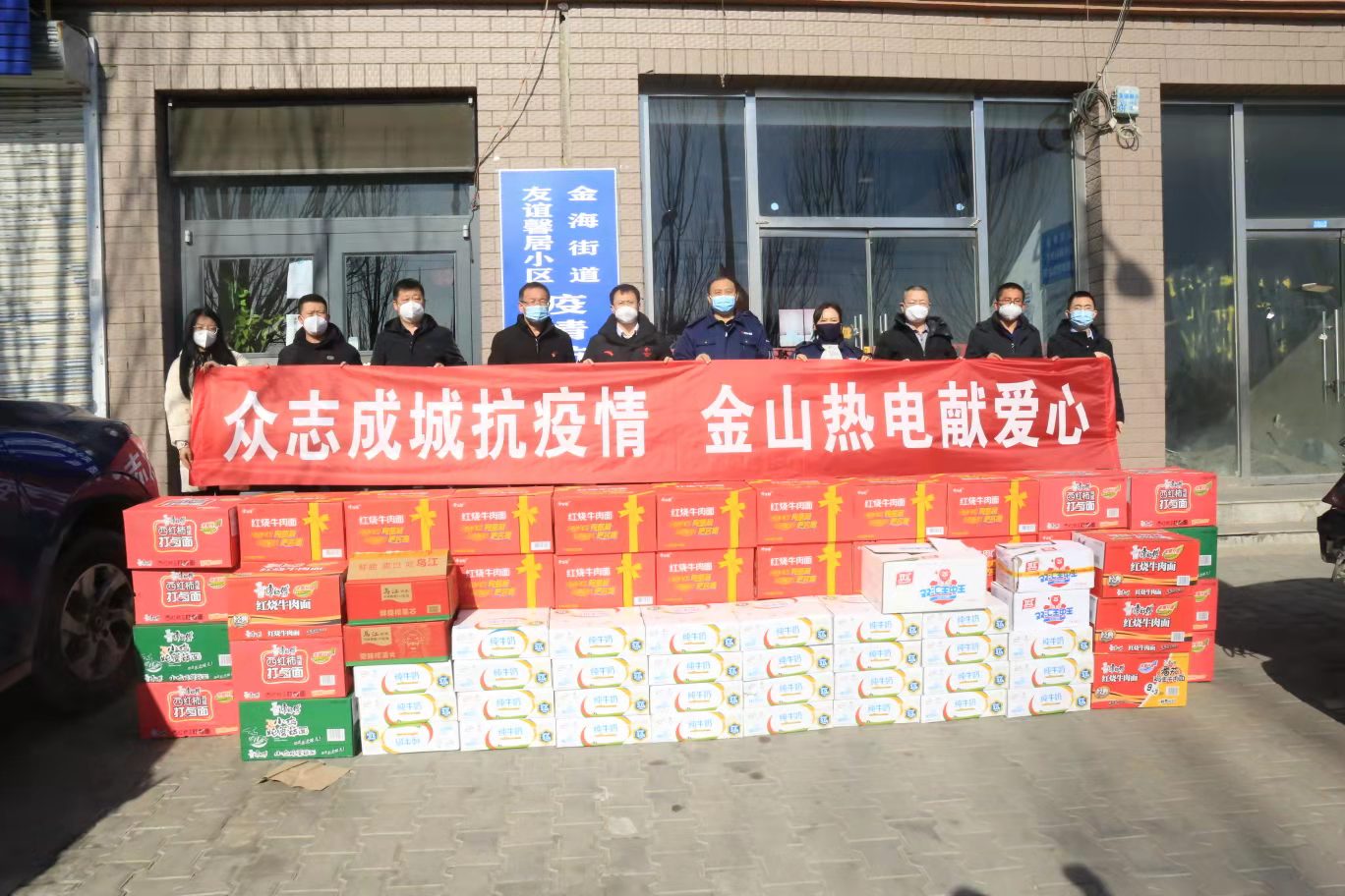 内蒙古能源发电金山热电有限公司与大北农反刍科技集团内蒙古四季春饲料有限公司分别为友谊馨居小区、易构城和三间房村卡点的一线工作人员和志愿者送上了牛奶、矿泉水、方便面、火腿肠等方便食品,电暖器、电热水壶、电暖宝、消毒液、手套等保暖防护物资,并向他们致以崇高的敬意和真挚的感谢,希望他们在为人民安全健康保驾护航的同时,也要做好自身防寒保暖和安全防护。