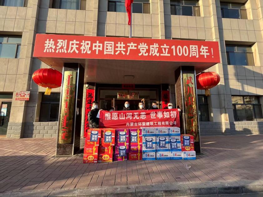 2月24日至25日,内蒙古环蒙建筑工程有限公司、兴辉建工集团有限公司等2家企业为武川赠送了医用口罩、消毒液、牛奶、方便面、矿泉水、暖宝宝贴等价值2万多元的防疫物资。