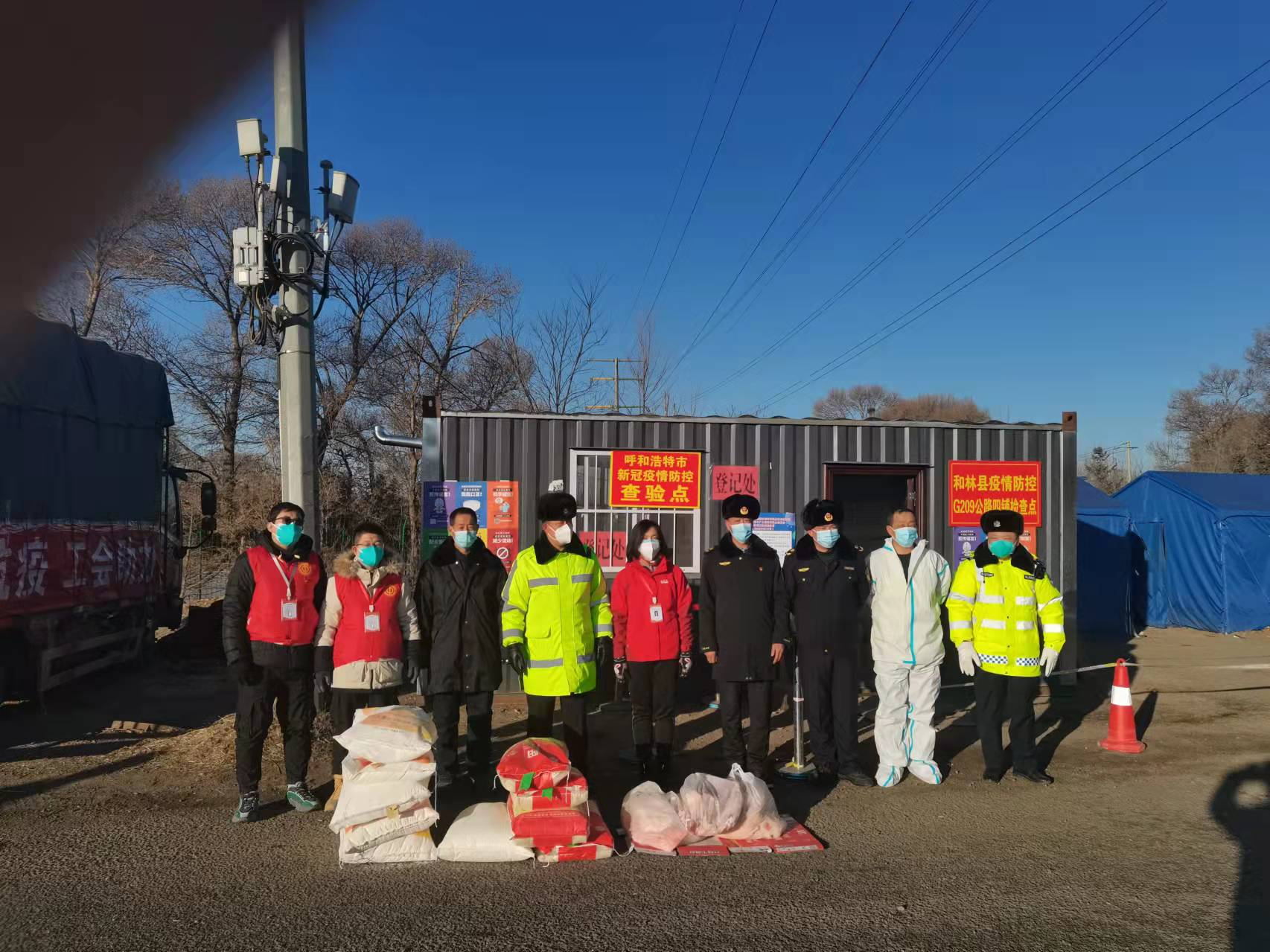 为让各条战线的抗疫工作者切实感受到党和政府的关怀,2月26日,和林格尔县总工会将一批生活物资紧急运送到县域交界处的疫情防控公路查验点,并对卡点工作人员进行慰问。