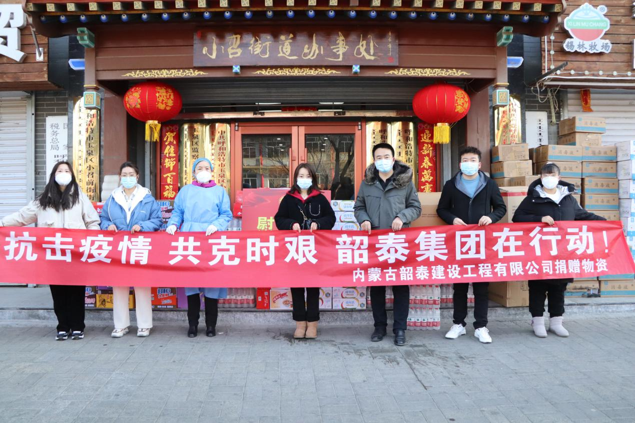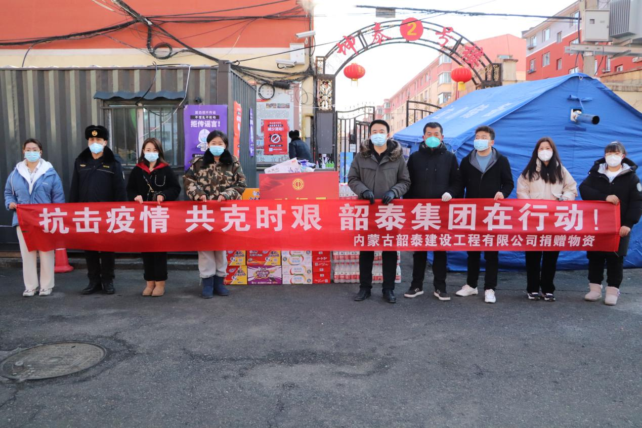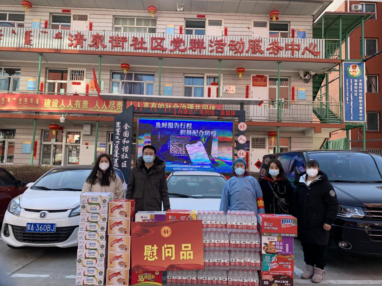 同时,呼和浩特市泰尔力图医疗保健用品有限公司、内蒙古韶泰建设工程有限公司、内蒙古千淘进出口有限公司等爱心企业分别为玉泉区总工会、小黑河镇、坤泰小区、小召前街街道办事处、兴隆巷街道办事处清泉街社区、石东路街道办事处碱滩村金熙嘉园小区等抗疫一线单位捐赠了防护口罩、酒精、食品、保暖裤等抗疫物资,并向一直奋战在疫情防控一线的工作人员表达了敬意和慰问。