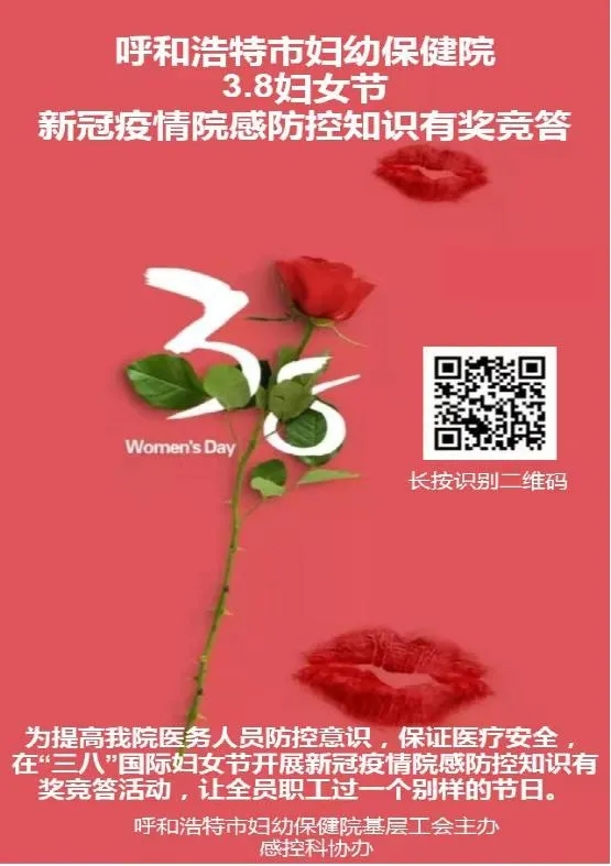 为着力提升医务人员疫情防控防治业务水平和自我防护意识,凝心聚力打赢打好新冠肺炎疫情防控阻击战。3月4日,在“三八”国际妇女节即将到来之际,呼市妇幼保健院工会协同感控科结合当前形势,组织女职工举办了以“疫情防控 你我同行”为主题的疫情防控线上知识竞赛。