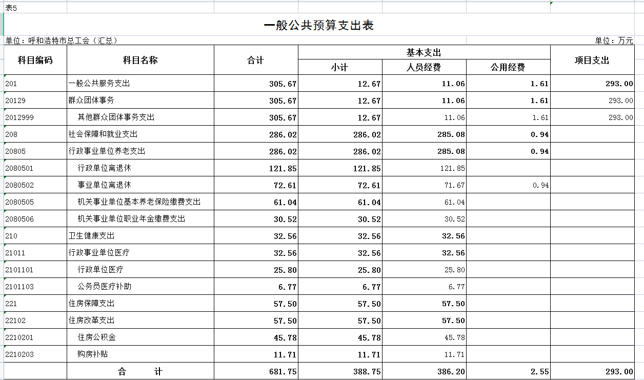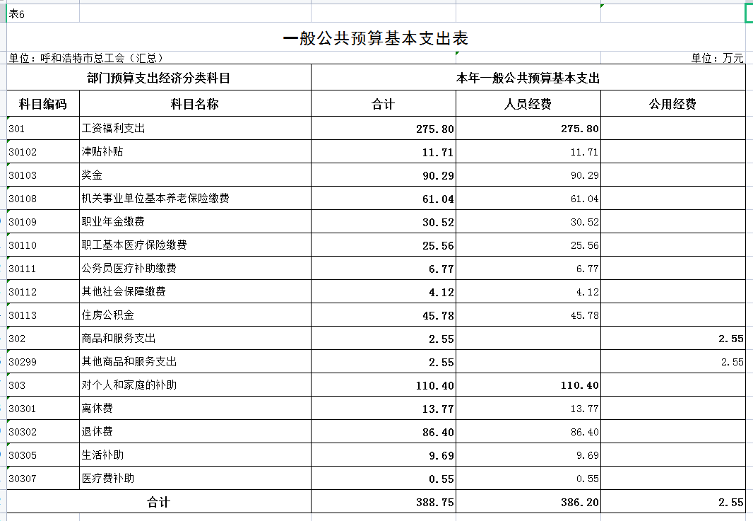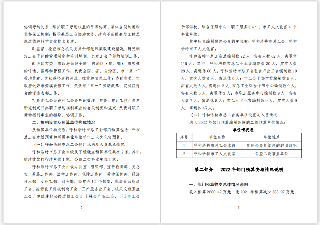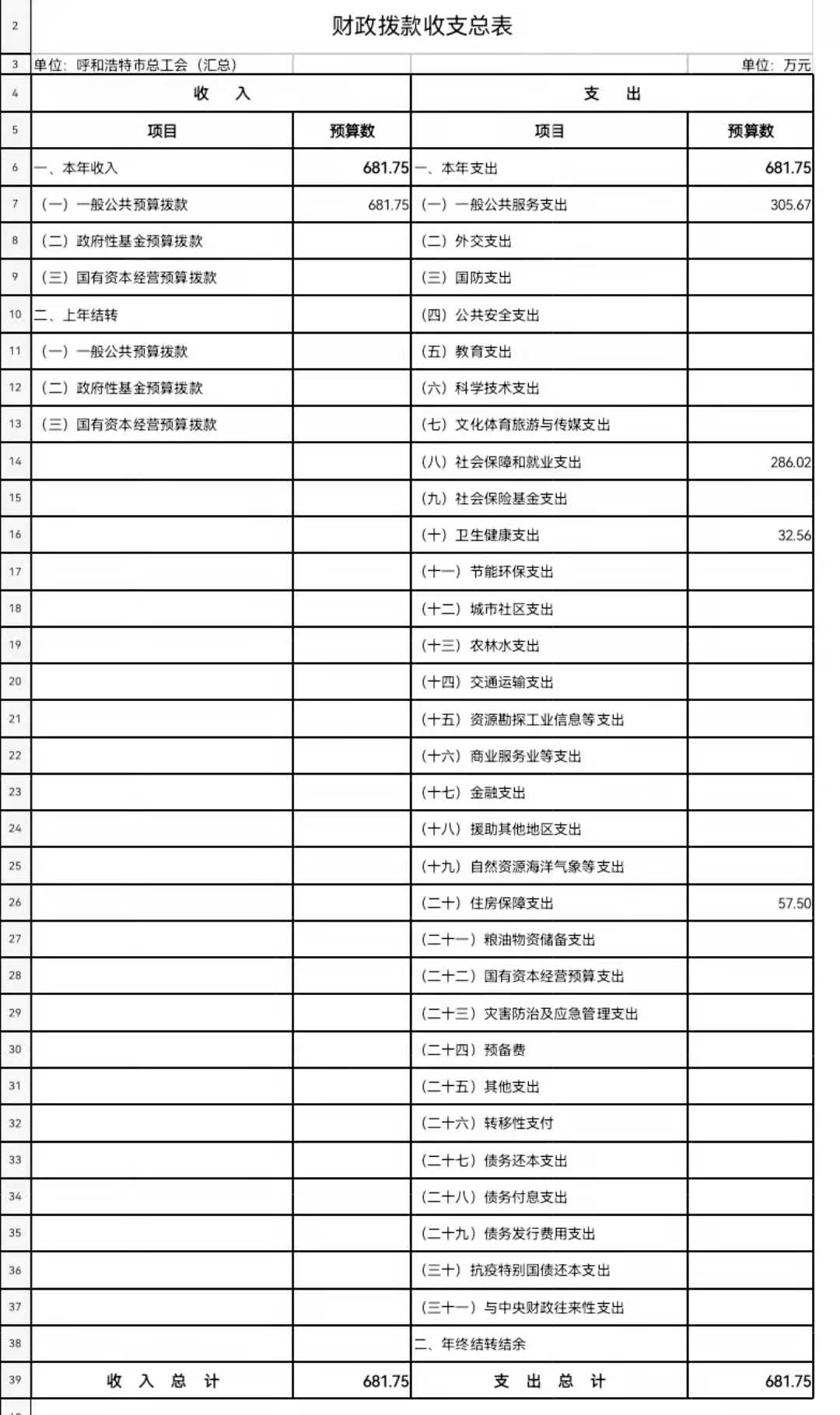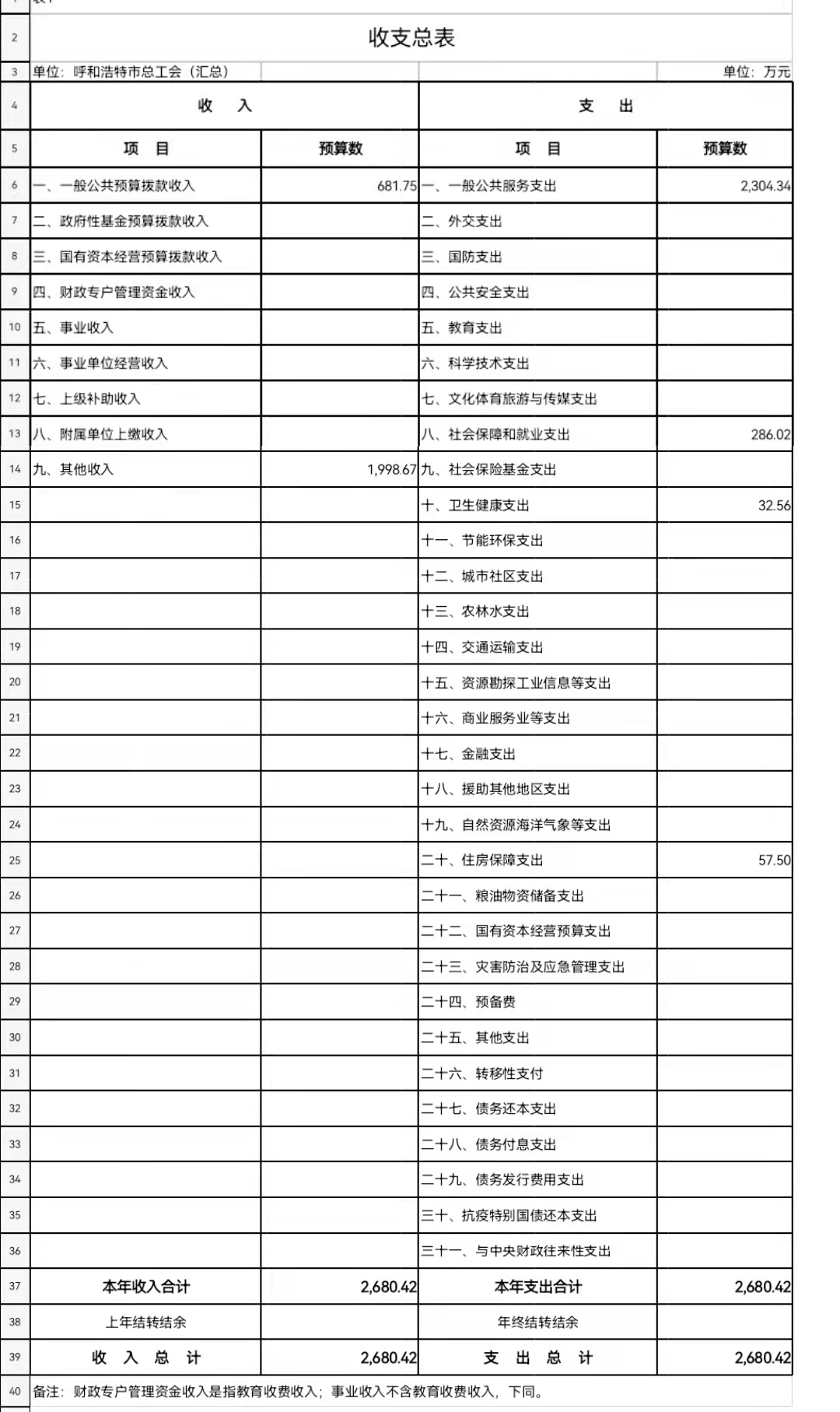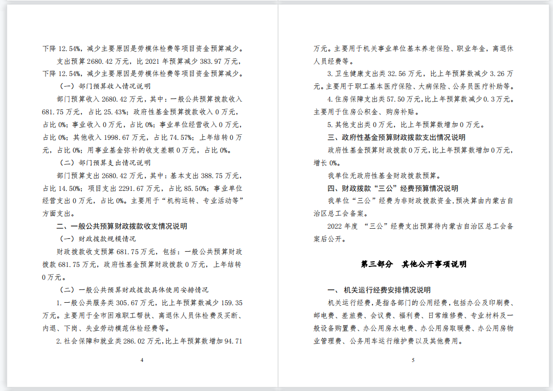 呼和浩特市总工会(汇总)2022年预算公开报告