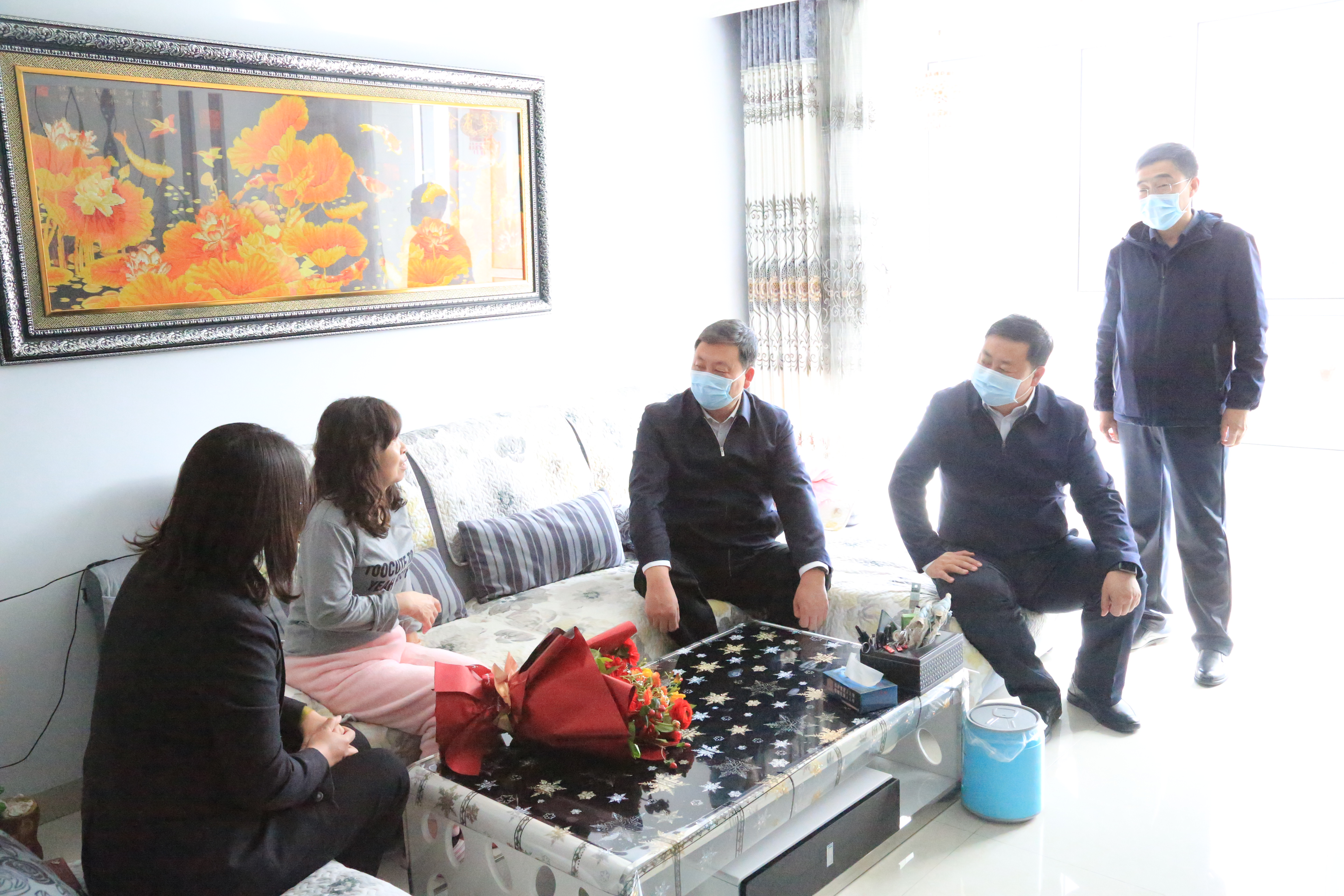 3月16日、17日,和林格尔县总工会领导班子陪同和林格尔县委书记李六小和格林格尔县委常委、副县长王晓鸣慰问疫情防控一线受伤医护人员。县人大常委会副主任、总工会主席蒲喜万,县总工会党组书记伊俊文等参加为期两天的慰问活动。