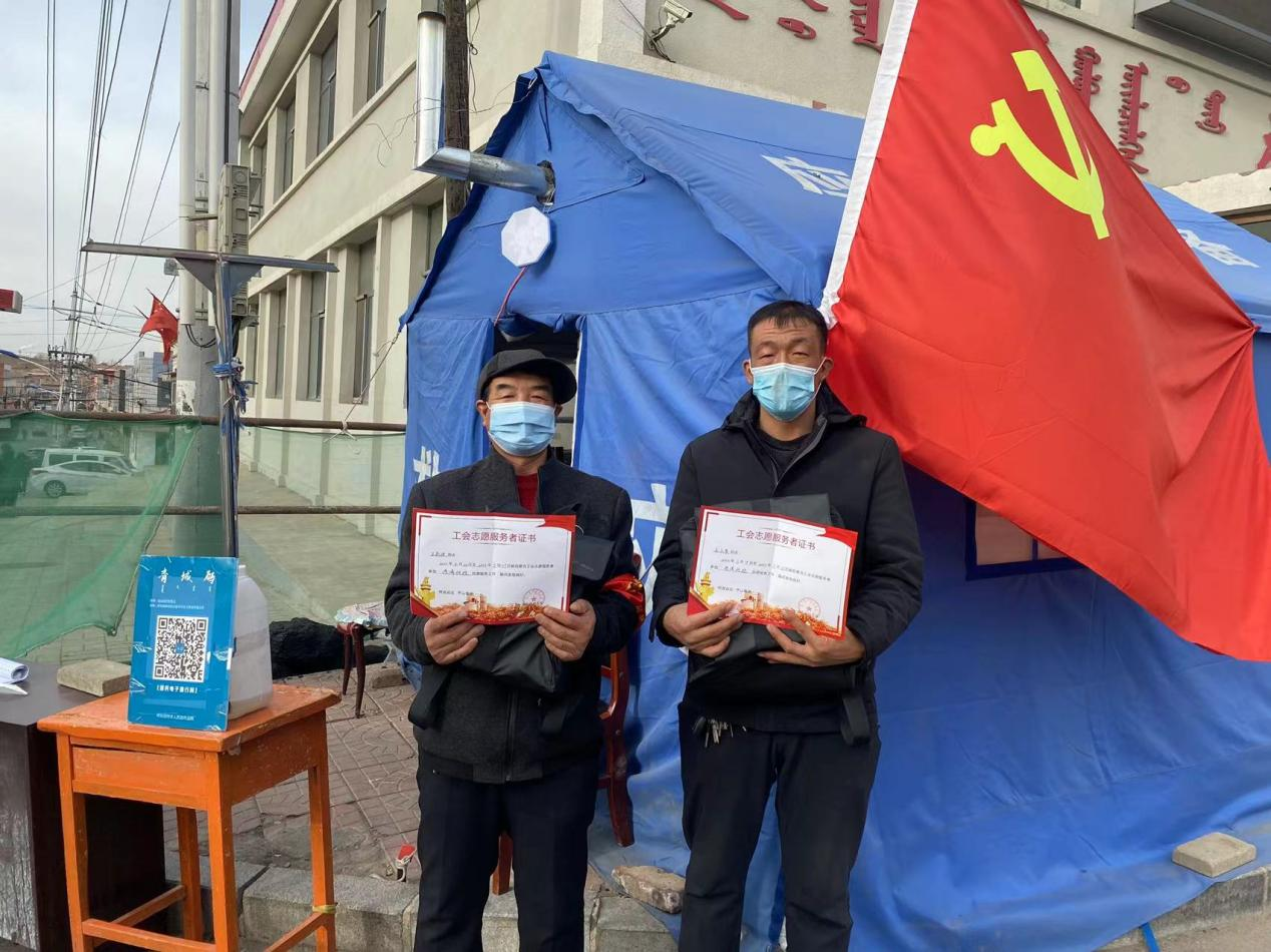 武川县新冠肺炎疫情发生以来,武川县总工会志愿者积极响应县委号召,投身社区群防群控,冲锋在疫情防控最前沿。3月28日,武川县总工会党组书记、主席张显业慰问一线疫情防控志愿者,为他们发放了志愿者证书及慰问品,送去了“娘家人”的问候和关怀。