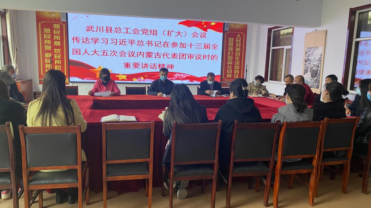 4月11日,武川县总工会党组召开(扩大)会议,传达学习习近平总书记在参加十三届全国人大五次会议内蒙古代表团审议时的重要讲话精神,武川县总工会党组领导班子成员和各科室工作人员参加会议。会议由党组书记、主席张显业主持。