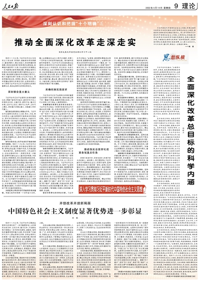 习近平新时代中国特色社会主义思想,明确全面深化改革总目标是完善和发展中国特色社会主义制度、推进国家治理体系和治理能力现代化。深入学习贯彻习近平新时代中国特色社会主义思想,必须深刻认识把握全面深化改革总目标的科学内涵和实践要求,坚持正确改革方向,不断推动全面深化改革向广度和深度进军,为党和国家事业发展提供根本制度保障、注入强大生机活力。今天刊发的3篇文章,围绕这一主题进行阐述。