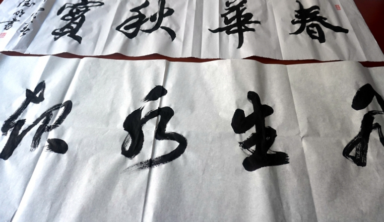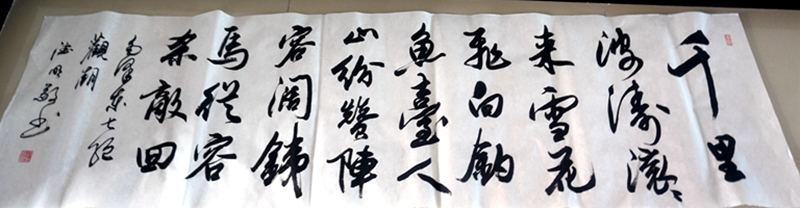 一幅幅字体多样、风格迥异的书法作品或气势恢宏,或笔墨酣畅,赢得阵阵喝彩。活动中,原清水河县委宣传部部长杨德明、清水河县人大常委会副主任温利平,清水河县政协文史委员会主任张全载等书法名家和书画爱好者共同交流,相互切磋,挥毫泼墨,创作书法作品20余幅。