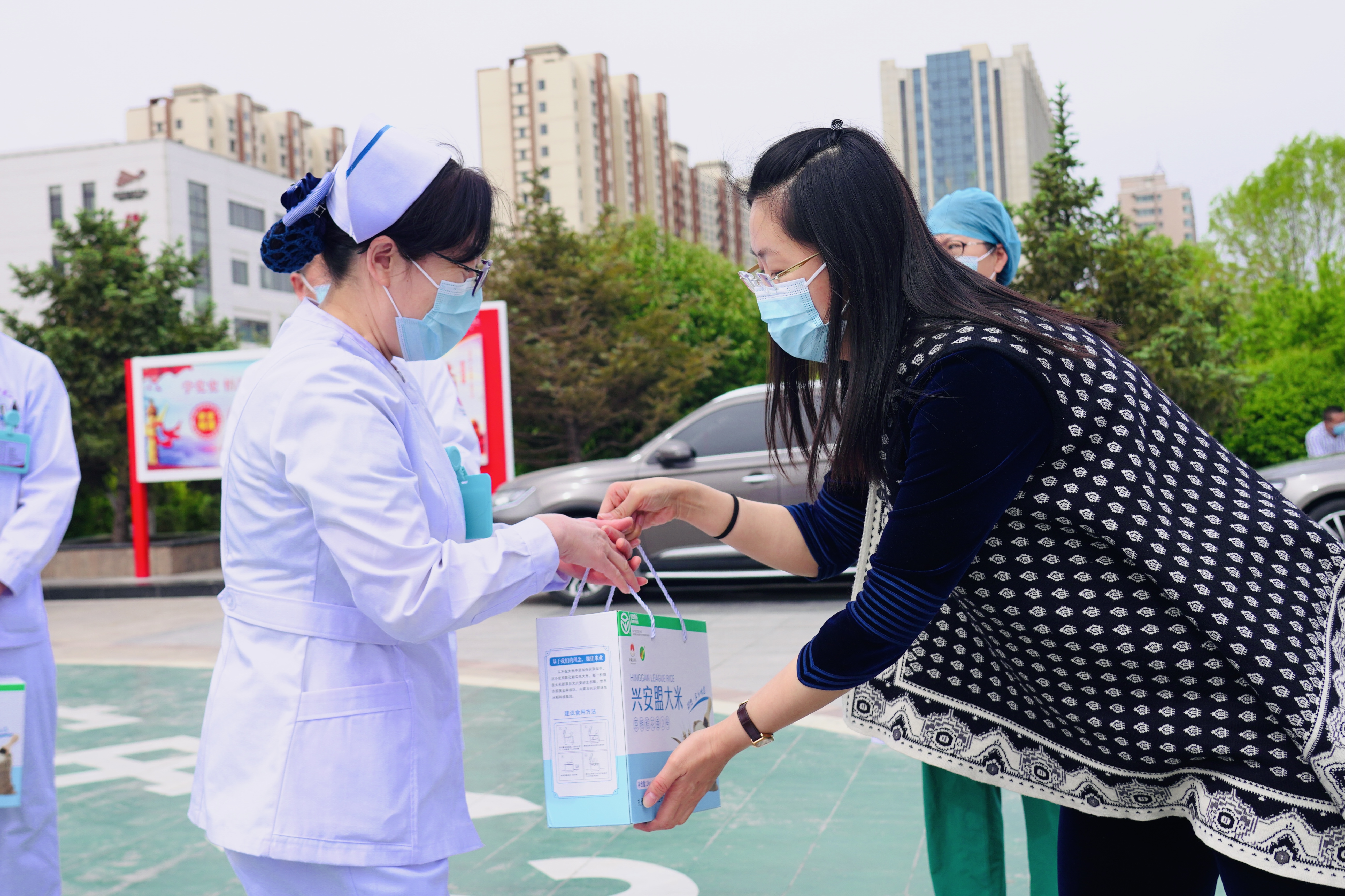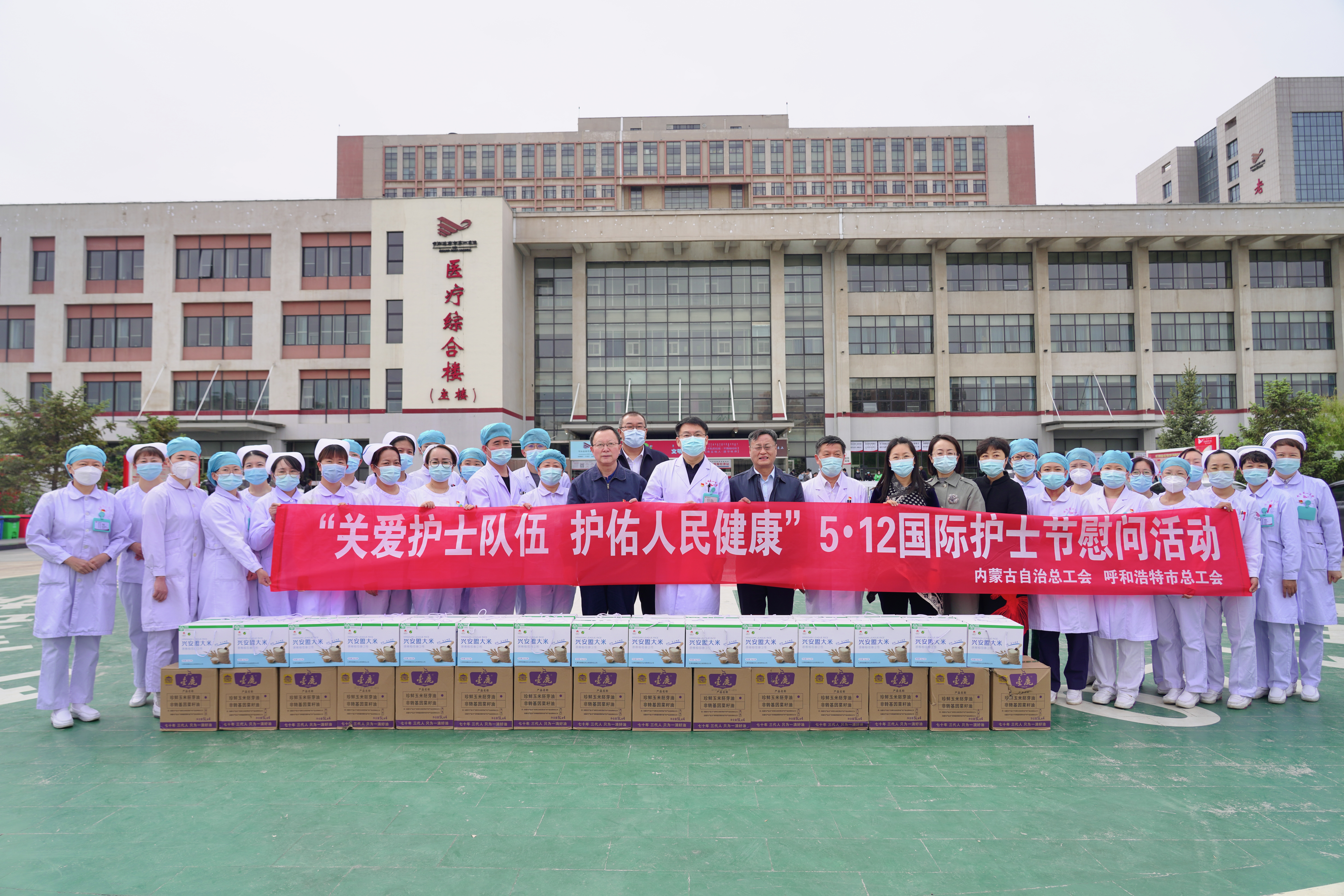 为弘扬南丁格尔精神,在第111个国际护士节来临之际,5月11日上午,自治区总工会党组成员、副主席包铁强,自治区教科文卫体工会负责人邢亦凡,呼和浩特市总工会副主席云娜来到呼和浩特市第一医院慰问援沪援吉等奋战在疫情防控一线的广大护士。对奋战在疫情防控一线的护理人员和广大护士致以节日的问候,送上了两级工会组织的关怀和慰问。