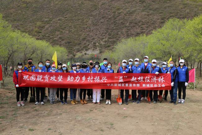 春风携细雨,正是春种时。为巩固脱贫攻坚成果,扎实推进乡村振兴有效衔接。5月12日上午,新城区委宣传部、新城区总工会认真贯彻落实区委、政府的工作安排部署,认真践行生态优先,绿色发展,与呼和浩特日报社以及内蒙古在线媒体文化发展有限公司、永泽建设工程咨询有限公司、内蒙古高速科技产业有限公司、内蒙古宏桥建设集团有限公司、内蒙古TCL光电科技有限公司工会委员会、呼和浩特市宏盛城市发展建设有限责任公司、内蒙古志信建筑工程有限公司等7家爱心企业来到新城区保合少镇水磨村爱心果园(扶贫基地),共同开展“巩固脱贫攻坚 助力乡村振兴‘益’起植经济林”公益植树活动。