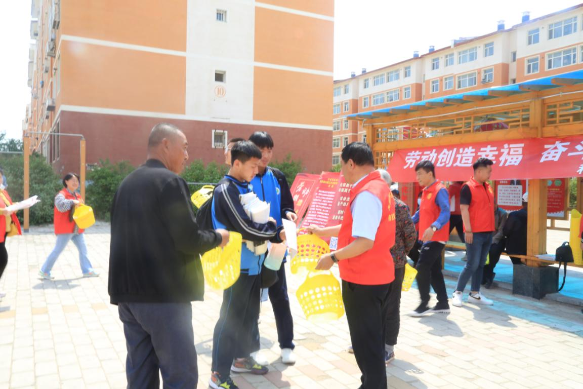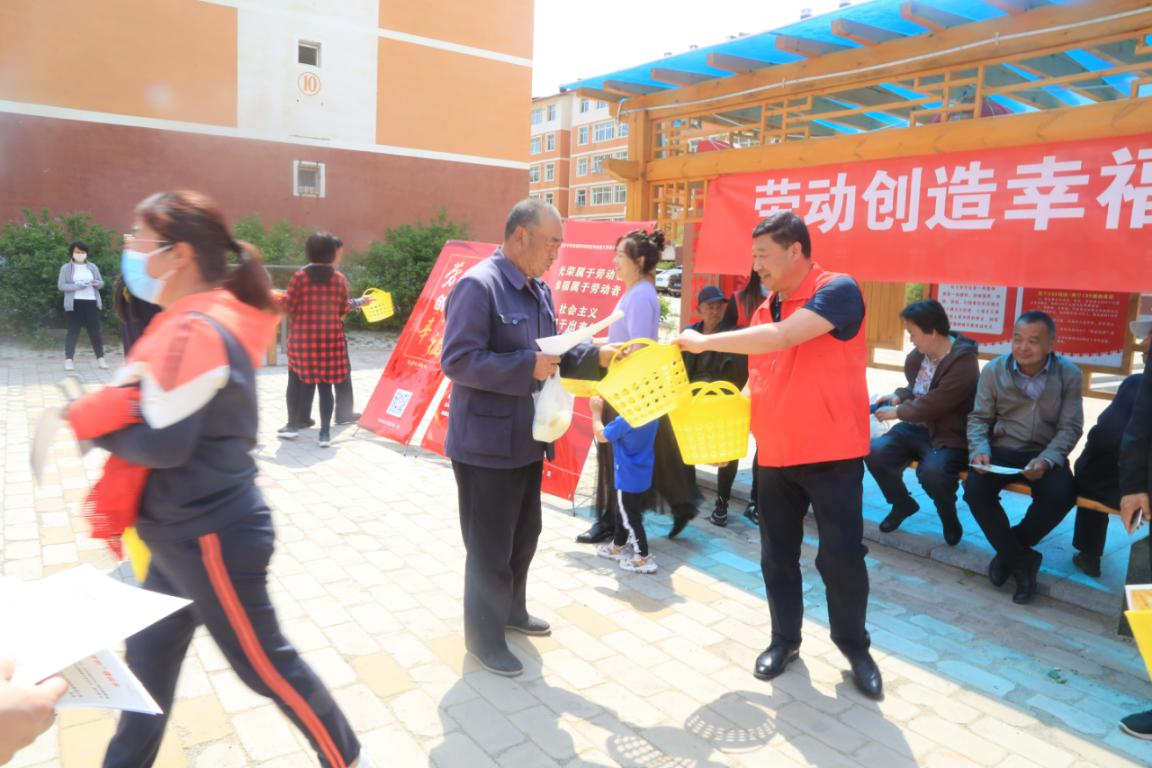 为弘扬劳模精神、劳动精神、工匠精神,向劳动者致敬,团结引领职工“感党恩、听党话、跟党走”,助力和林格尔县全国文明城市创建工作,5月19日,和林格尔县总工会党组书记伊俊文,党组成员、副主席贺永恒和孙瑞带领工会全体志愿者,联合学府社区居委会志愿者,到创城包联的广厦小区开展“劳动创造幸福.奋斗成就梦想”宣传活动。
