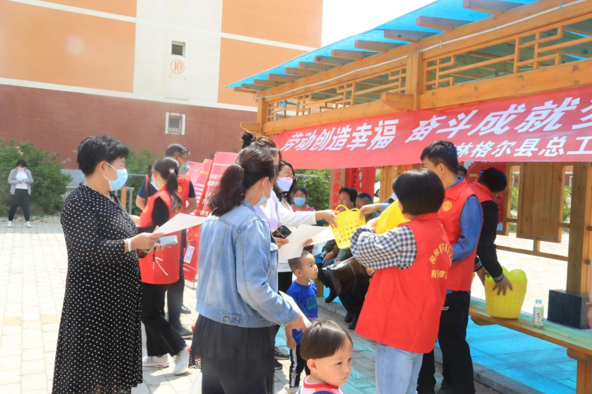 活动现场布置展架和条幅,氛围浓厚,活动过程中,和林格尔县总工会志愿者向小区居民发放了宣传资料和宣传品,群众反响强烈。
